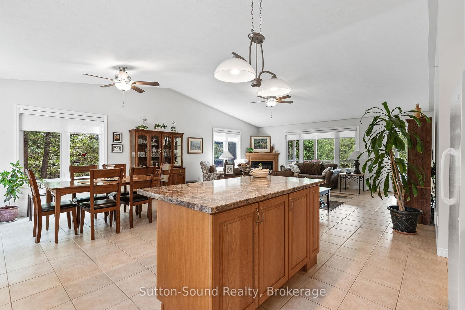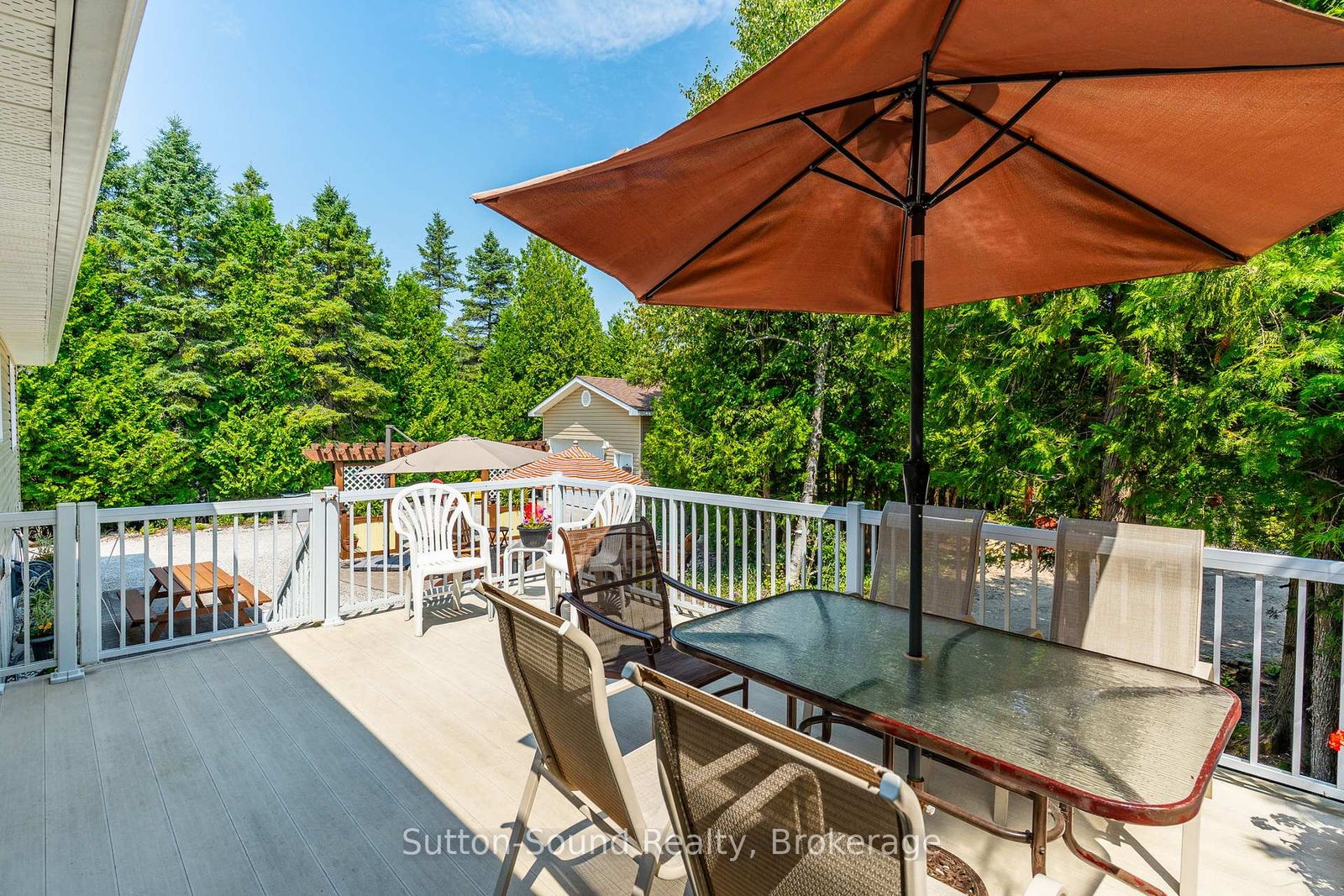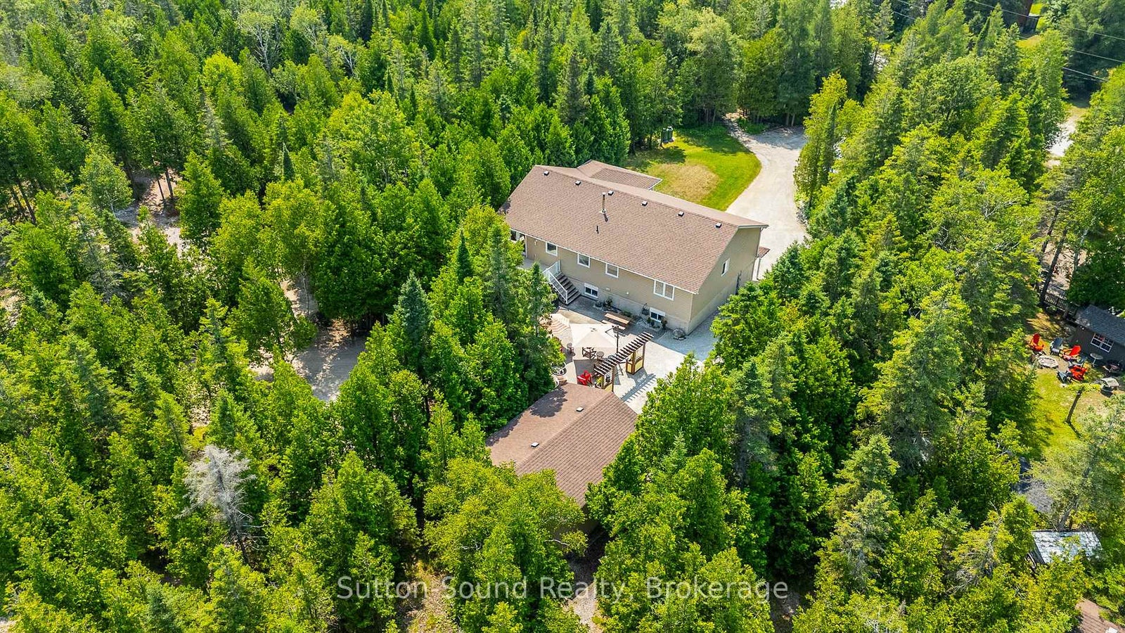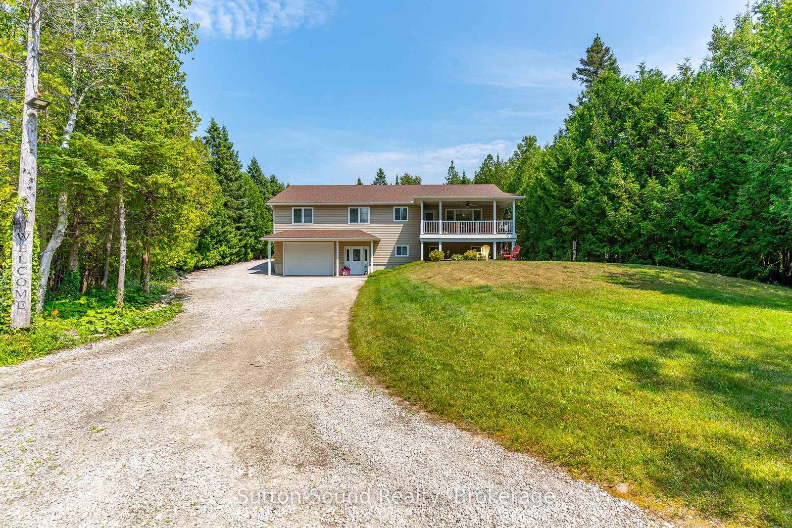 Just steps from Lake Huron with deeded beach access, this 2005 custom-built 5 bedroom, 3 bathroom home offers a rare blend of privacy, comfort, and premium features on a scenic(approx)2.5 acre property in the heart of Howdenvale. Surrounded by mature trees and private walking trails, it's the perfect retreat for those who value both outdoor adventure and modern convenience.The bright, open-concept main floor features a spacious living and dining area, a well-appointed kitchen with access to either the front or back deck, three bedrooms, including a primary suite complete w a walk-in closet and 3-pc ensuite bath and main floor laundry. Two additional 3 pc bathrooms, one on the main floor and one on the lower level, ensure convenience for family and guests. The finished lower level offers in-floor heating, a family room, two additional bedrooms or flex spaces, a roughed-in kitchen, making it ideal for multi-generational living, guest quarters, or a private in-law suite, plus a utility room and a separate workshop. Notable upgrades include composite decking on both decks, retractable screen on doors, under and over cabinet kitchen lighting, vaulted ceiling, high-efficiency furnace(2022), heat pump(A/C)(2023)for year-round climate control, and a backup generator for peace of mind. Car enthusiasts, hobbyists, and those in need of extra storage will appreciate the attached 15.5' W x 35' D two-car garage and a detached 20' x 24' shop/garage. Outdoor living is equally impressive with a landscaped yard, designated sitting area w fire pit perfect for entertaining, perennial beds and lots of space for a vegetable garden. Across the road, your deeded access to Lake Huron means swimming, kayaking, canoeing, and world-class sunsets are just steps away. Ideally located close to boat launches, sandy beaches, and all the natural beauty of the Bruce Peninsula, this property offers the best of year-round living, weekend getaways, or investment potential.