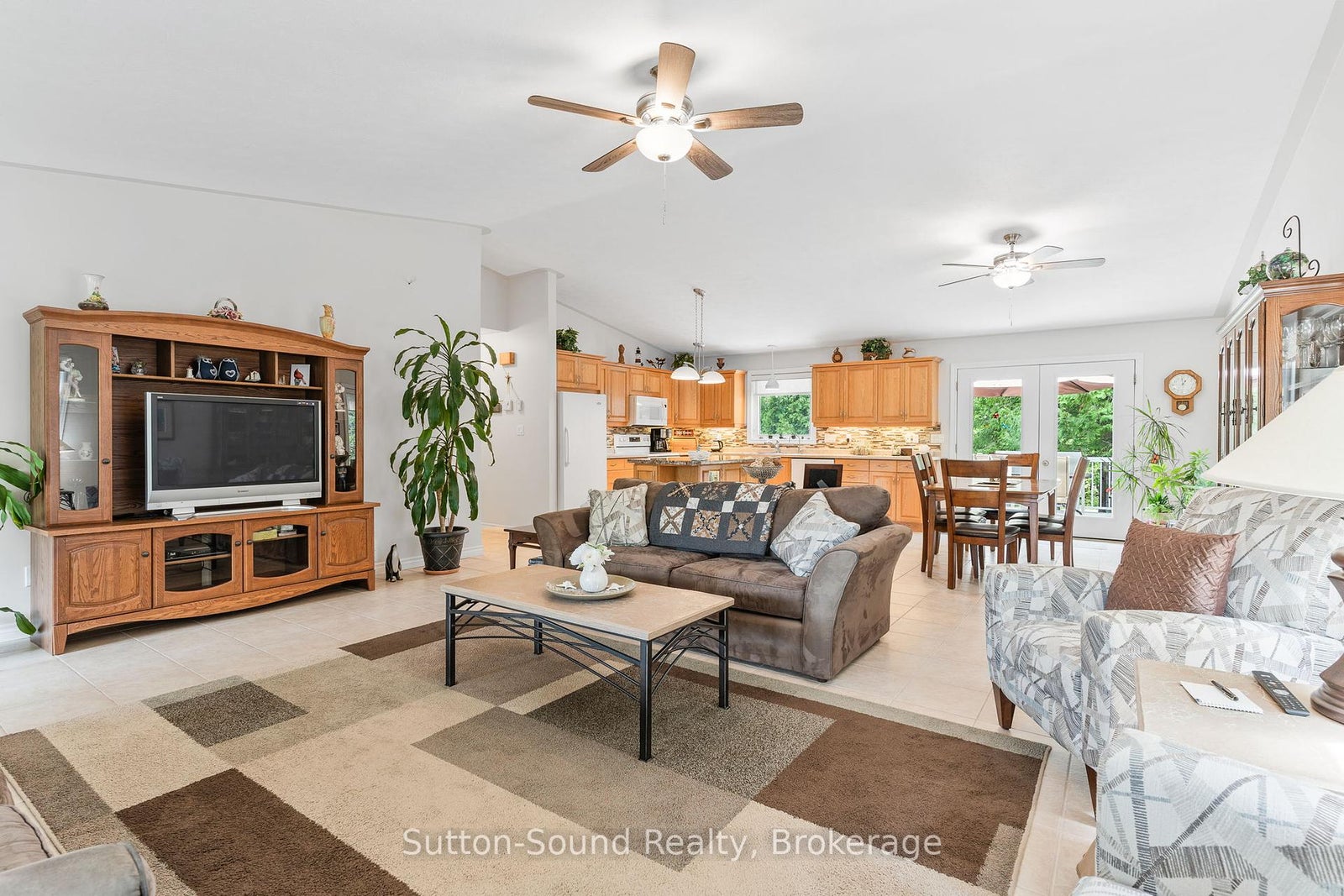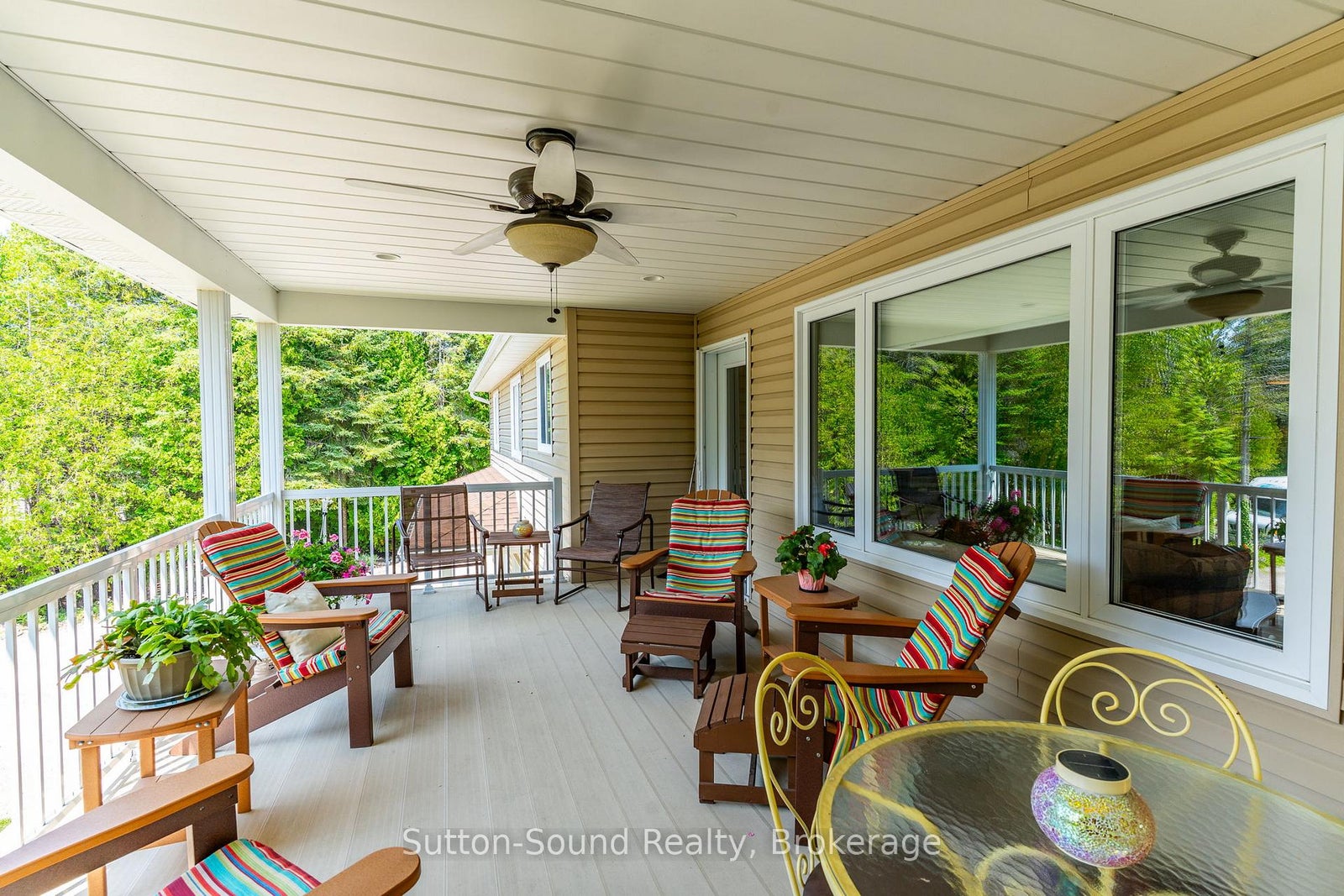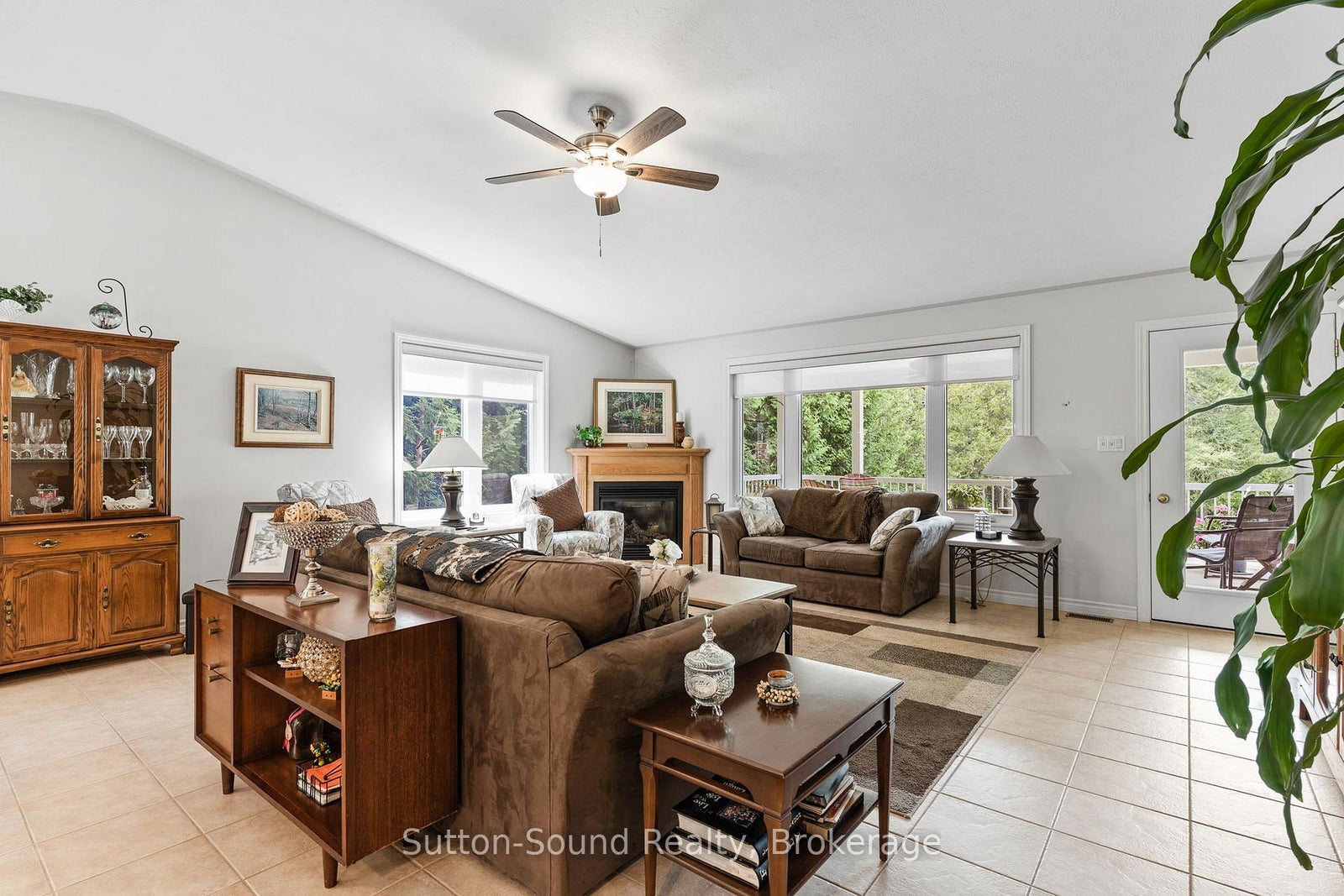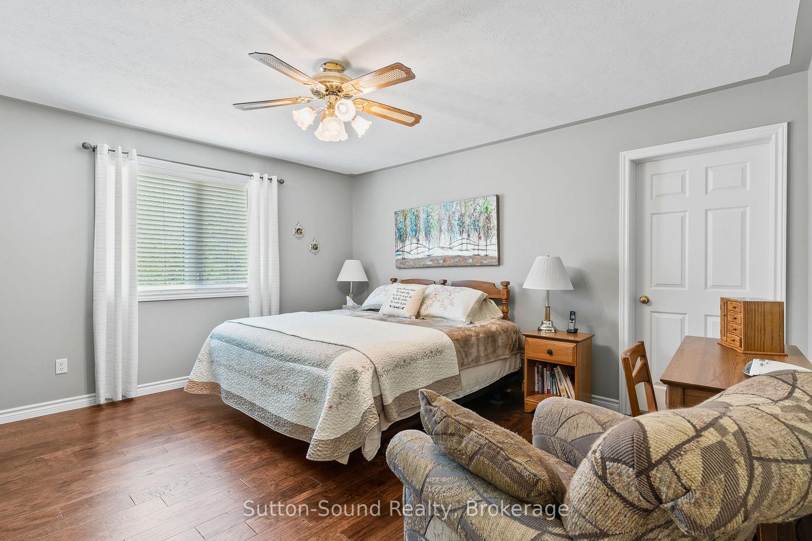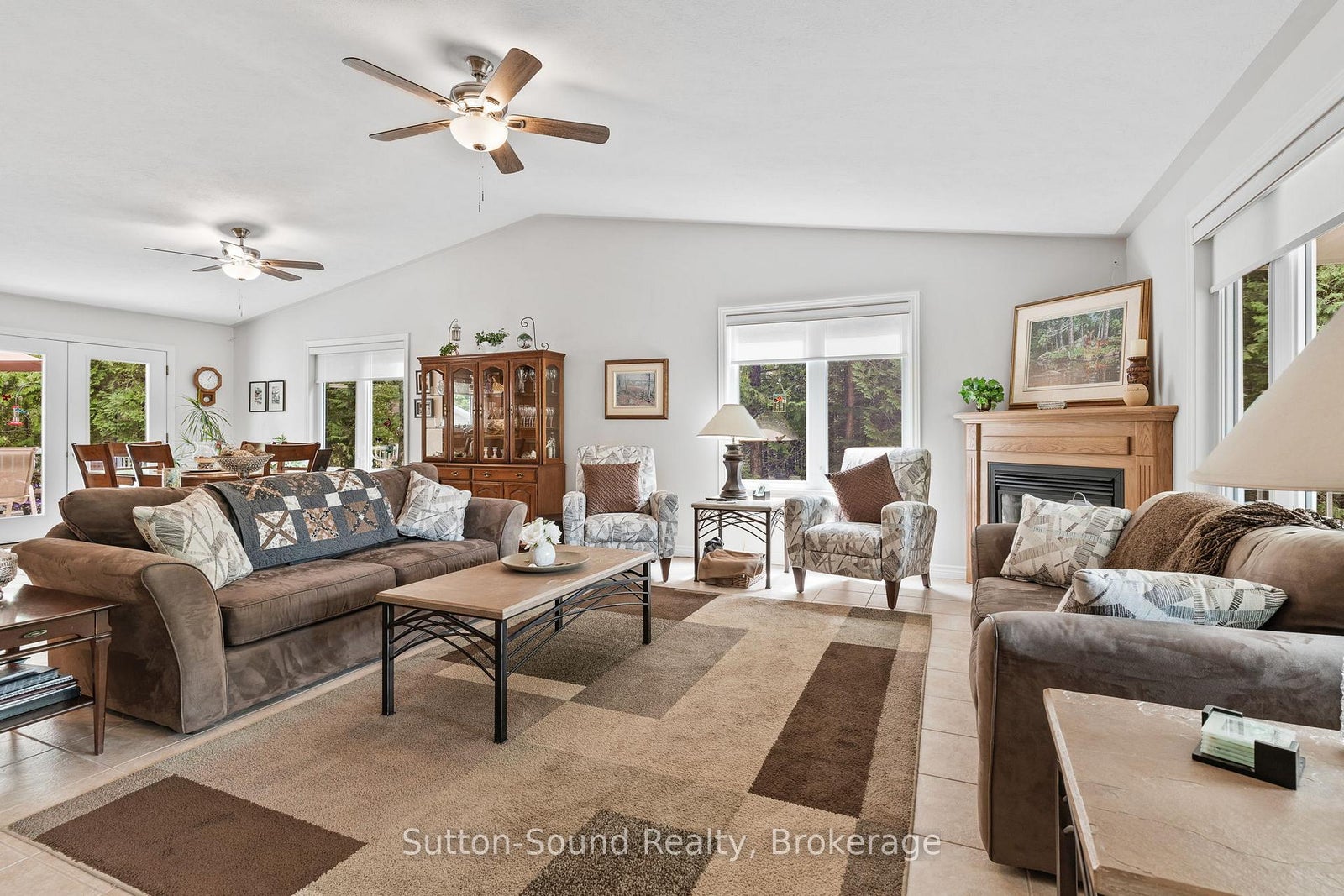 Just steps from Lake Huron with deeded beach access, this 2005 custom-built 5 bedroom, 3 bathroom home offers a rare blend of privacy, comfort, and premium features on a scenic(approx)2.5 acre property in the heart of Howdenvale. Surrounded by mature trees and private walking trails, it's the perfect retreat for those who value both outdoor adventure and modern convenience.The bright, open-concept main floor features a spacious living and dining area, a well-appointed kitchen with access to either the front or back deck, three bedrooms, including a primary suite complete w a walk-in closet and 3-pc ensuite bath and main floor laundry. Two additional 3 pc bathrooms, one on the main floor and one on the lower level, ensure convenience for family and guests. The finished lower level offers in-floor heating, a family room, two additional bedrooms or flex spaces, a roughed-in kitchen, making it ideal for multi-generational living, guest quarters, or a private in-law suite, plus a utility room and a separate workshop. Notable upgrades include composite decking on both decks, retractable screen on doors, under and over cabinet kitchen lighting, vaulted ceiling, high-efficiency furnace(2022), heat pump(A/C)(2023)for year-round climate control, and a backup generator for peace of mind. Car enthusiasts, hobbyists, and those in need of extra storage will appreciate the attached 15.5' W x 35' D two-car garage and a detached 20' x 24' shop/garage. Outdoor living is equally impressive with a landscaped yard, designated sitting area w fire pit perfect for entertaining, perennial beds and lots of space for a vegetable garden. Across the road, your deeded access to Lake Huron means swimming, kayaking, canoeing, and world-class sunsets are just steps away. Ideally located close to boat launches, sandy beaches, and all the natural beauty of the Bruce Peninsula, this property offers the best of year-round living, weekend getaways, or investment potential.