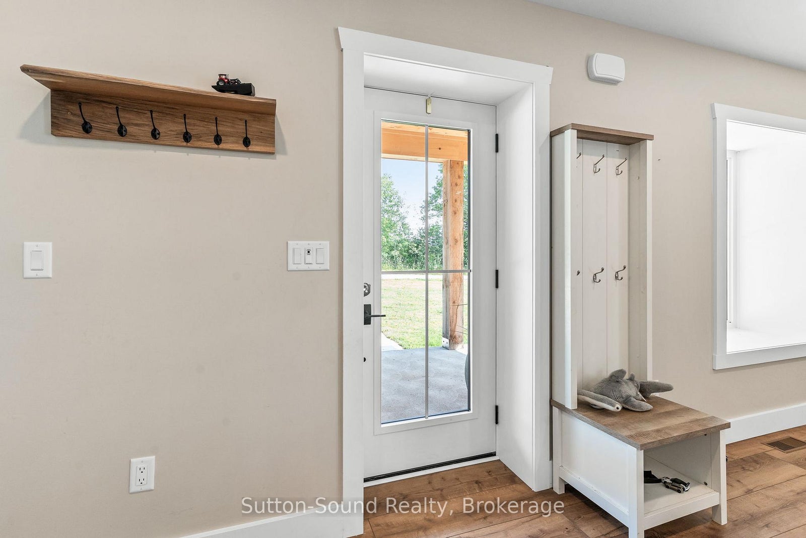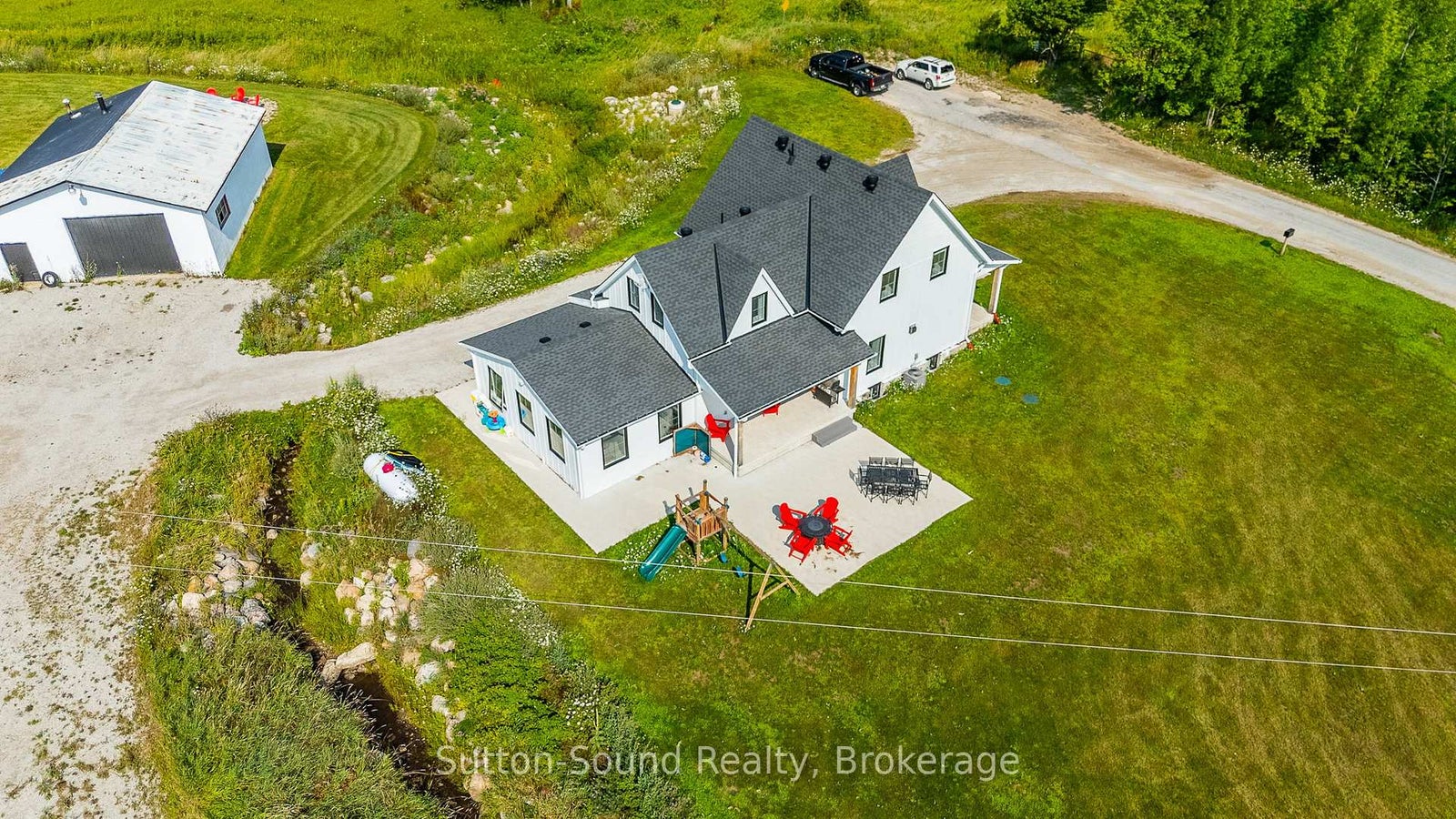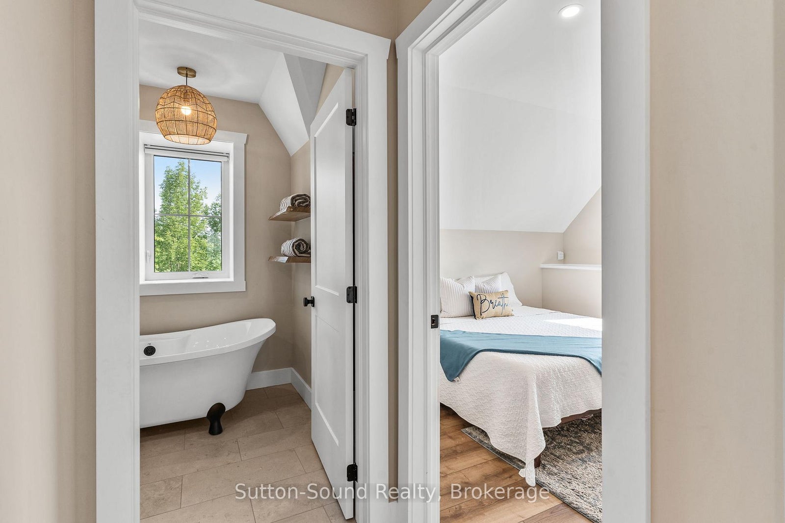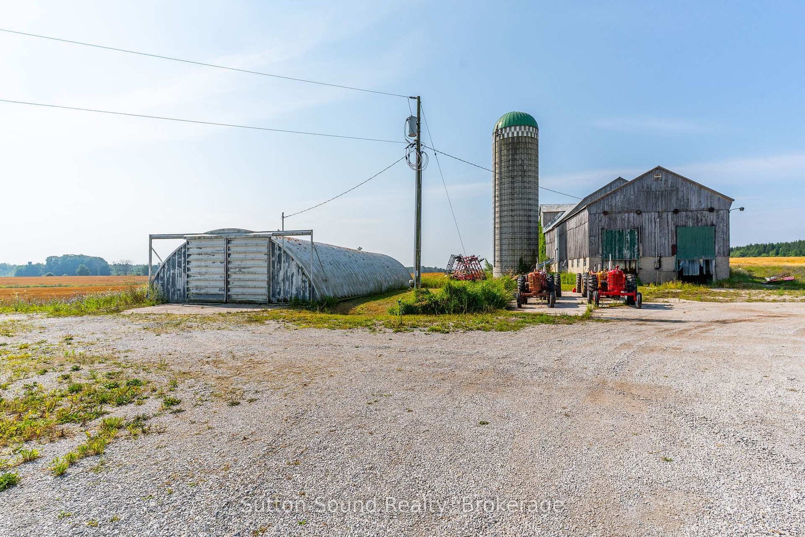 This exceptional 149-acre farm is privately set at the end of a quiet dead end road, bordered by the dramatic backdrop of the Niagara Escarpment and offering sweeping views of the countryside. With approximately 143 workable acres, the land is open, fertile, and has been systematically tiled as needed, with fence lines removed to enhance usability and flow.The original 1870 farmhouse has been completely renovated into a warm, modern home. It features forced-air propane heating, central air, and hot water on demand. The kitchen is designed for gathering, with a large island that seats six and patio doors leading to the large side deck that flood the space with natural light and frame the beautiful landscape. Character details like deep window sills and a natural stone propane fireplace create an inviting main floor, which also includes a stylish two-piece powder room. Upstairs are three bright bedrooms, a four-piece bath with soaker tub and glass shower, and a spacious laundry room with a utility sink. The large primary bedroom offers stunning views overlooking the land. The attached garage is a functional and stylish extension of the home, with a glass overhead door, large windows, and a finished concrete floor. The basement is dry, insulated with spray foam, and features a concrete floor, updated mechanical systems, and ample storage.Outdoor living is enhanced by covered verandahs, patios, a propane fire table, and a peaceful, stone-lined year-round creek. Outbuildings include a towering bank barn suitable for livestock or horses, a 38x100 ft Quonset hut, and a 32x40 ft detached garage. Located near the Bruce Trail, scenic lookouts, and snowmobile/ATV routes, and just a short drive to both Wiarton and Owen Sound, this is a rare opportunity to enjoy rural living at its finest.