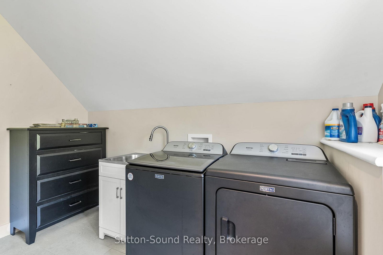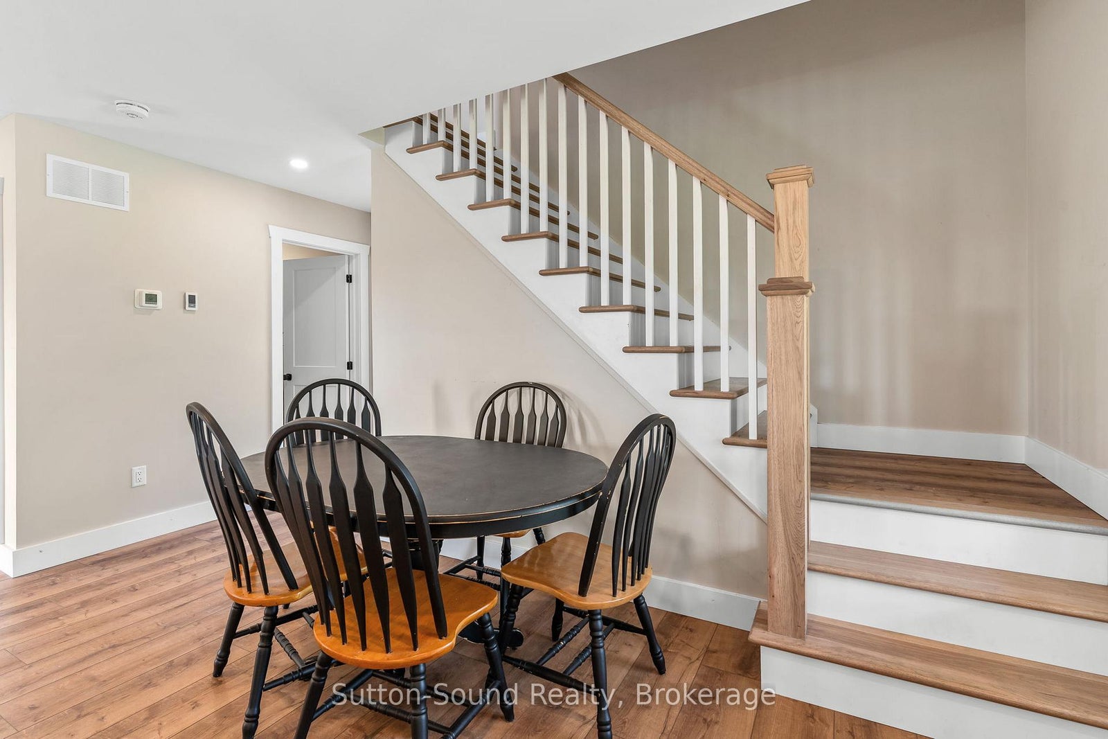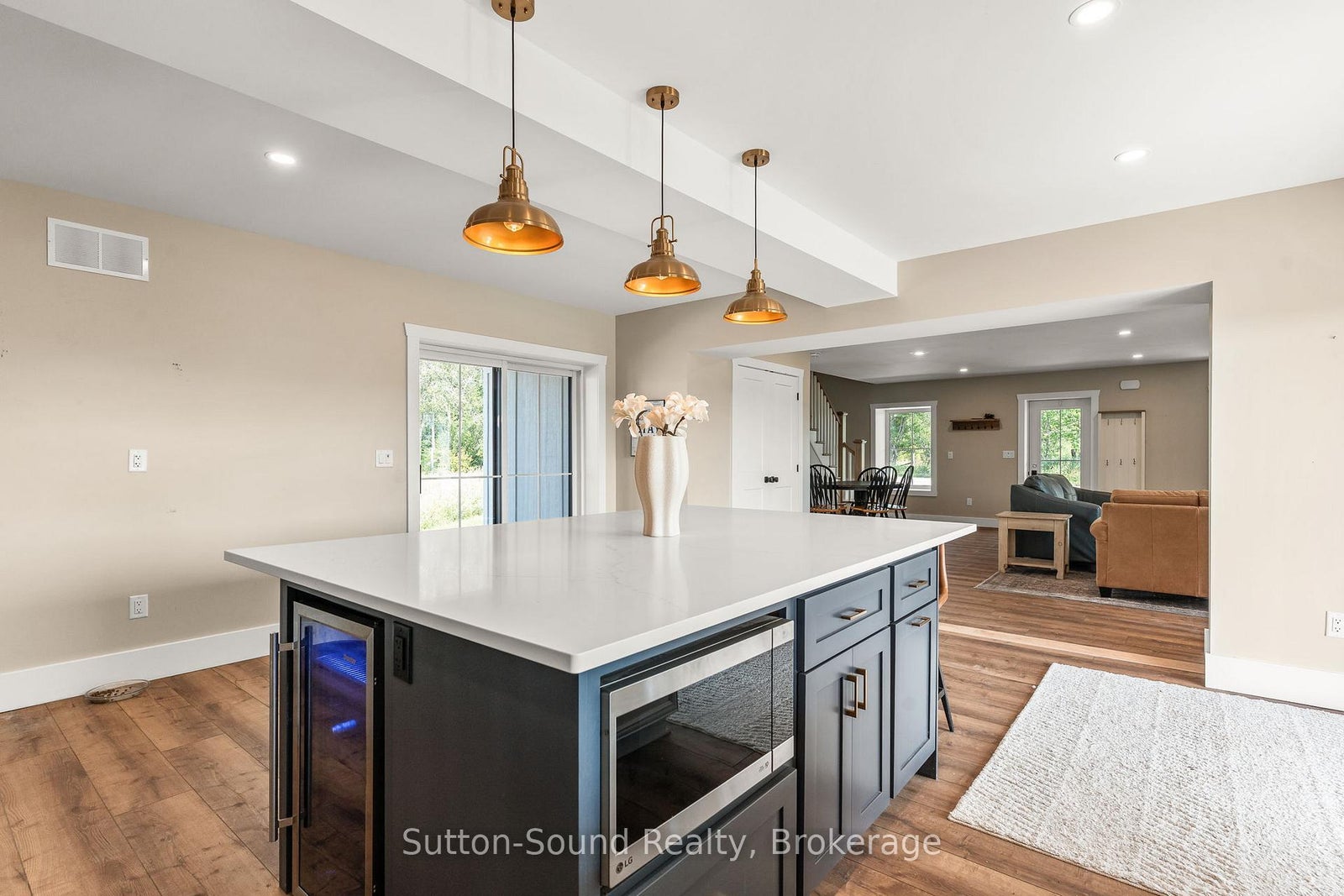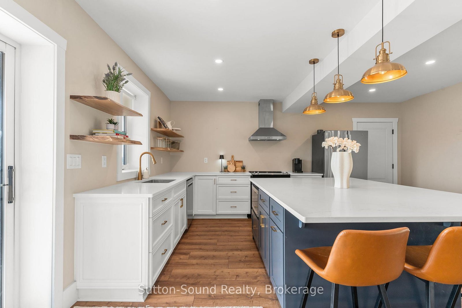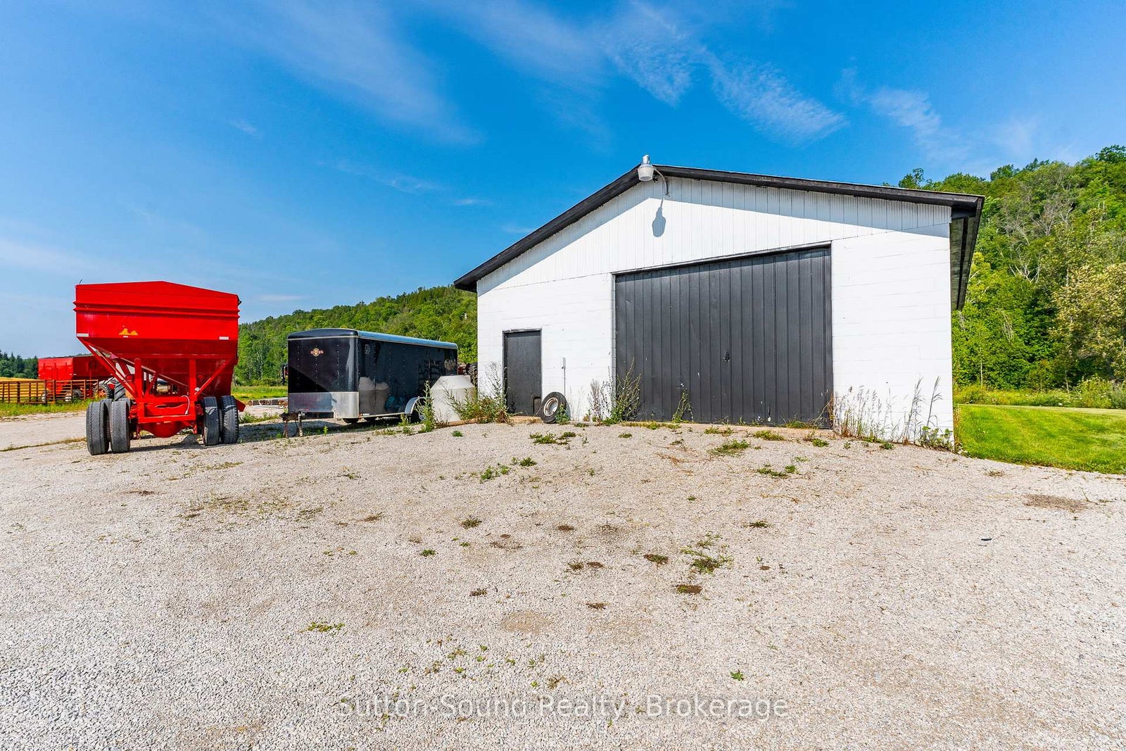 This exceptional 149-acre farm is privately set at the end of a quiet dead end road, bordered by the dramatic backdrop of the Niagara Escarpment and offering sweeping views of the countryside. With approximately 143 workable acres, the land is open, fertile, and has been systematically tiled as needed, with fence lines removed to enhance usability and flow.The original 1870 farmhouse has been completely renovated into a warm, modern home. It features forced-air propane heating, central air, and hot water on demand. The kitchen is designed for gathering, with a large island that seats six and patio doors leading to the large side deck that flood the space with natural light and frame the beautiful landscape. Character details like deep window sills and a natural stone propane fireplace create an inviting main floor, which also includes a stylish two-piece powder room. Upstairs are three bright bedrooms, a four-piece bath with soaker tub and glass shower, and a spacious laundry room with a utility sink. The large primary bedroom offers stunning views overlooking the land. The attached garage is a functional and stylish extension of the home, with a glass overhead door, large windows, and a finished concrete floor. The basement is dry, insulated with spray foam, and features a concrete floor, updated mechanical systems, and ample storage.Outdoor living is enhanced by covered verandahs, patios, a propane fire table, and a peaceful, stone-lined year-round creek. Outbuildings include a towering bank barn suitable for livestock or horses, a 38x100 ft Quonset hut, and a 32x40 ft detached garage. Located near the Bruce Trail, scenic lookouts, and snowmobile/ATV routes, and just a short drive to both Wiarton and Owen Sound, this is a rare opportunity to enjoy rural living at its finest.