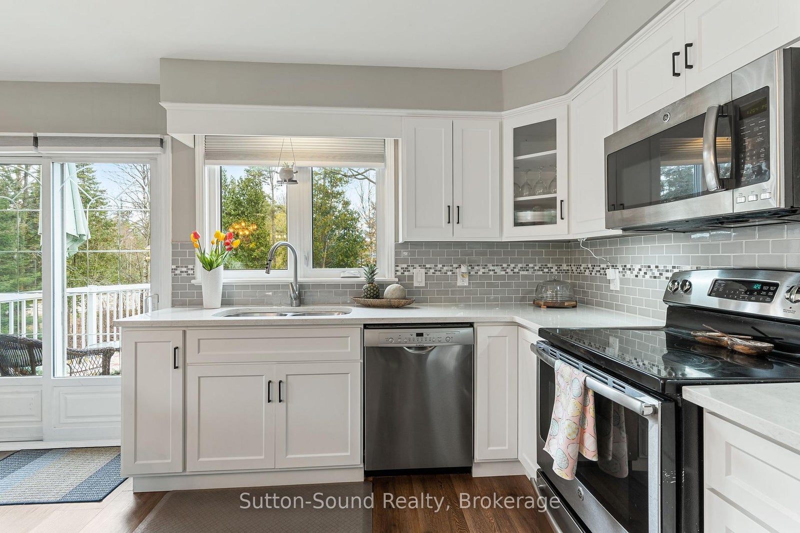 SHORT WALK TO SAUBLE BEACH! Step into the laid-back lifestyle you've been dreaming of! Just a quick stroll to the sandy shoreline, this original family-owned, 4-season raised bungalow with Fibre Optics, Natural Gas and bursting with warmth, charm, and beach-town character. Feel the breeze, smell the lake air, and spend your days swimming, strolling to shops, or relaxing in your own private oasis. Inside, you'll find 4 bright bedrooms, 2 modern baths, and a freshly updated mennonite kitchen (2024) perfect for entertaining. The cozy finished lower level with gas fireplace (2022) is ideal for movie nights, home business/office, or a fully equipped guest suite. A/C (2018), windows (2021), siding (2022), roof (2015), septic bed(2025) iron filter (2020), new front door (2023), some flooring (2022). Outdoor living shines here, soak up the sun on the upper deck, enjoy relaxing on the shady covered porch, or curl up with a book while listening to the waves. The attached garage with workshop is perfect for hobbies or storage, and the TWO driveways have space for boats, boards, and beach cruisers! SO whether you're searching for a year-round beach haven, a family getaway, or a smart investment, this rare gem offers it all! Big on charm, prime location, and that everyday-on-holiday feeling. The lake is calling....come answer it!..