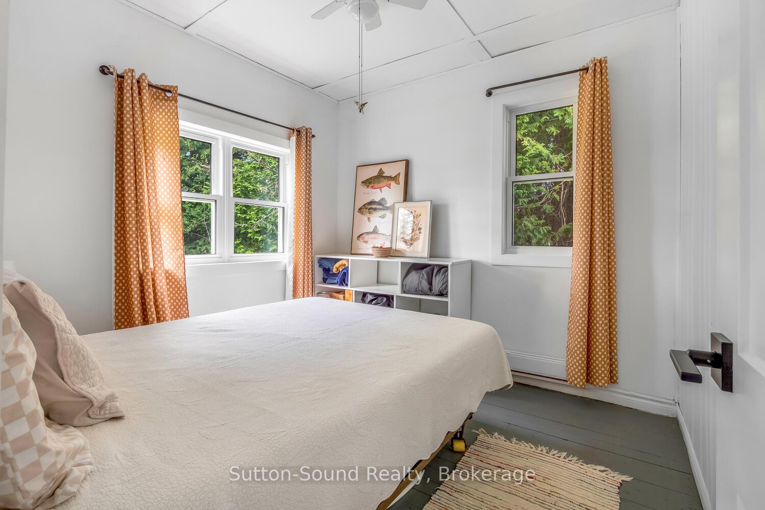 Tucked away in the picturesque community of Pike Bay, this beautifully refreshed now 4 season 2-bedroom, 1-bath cottage plus a seasonal bunkie, combines rustic character with a long list of updates! Designed as a cozy retreat, it offers the perfect balance of relaxation and convenience whether you're escaping for a weekend getaway or planning family summers on the Bruce Peninsula. The open-concept kitchen/living/dining area creates a welcoming atmosphere, anchored by a cozy wood stove perfect for gathering with loved ones or curling up on cooler nights. So many recent upgrades including windows, flooring, kitchen, bathroom, laundry, interior doors, iron filter, water heater, heat pump w A/C plus the cottage has been winterized w foam insulation, aspenite and new siding, ensuring both comfort and peace of mind. The inviting covered porch extends the living space outdoors, ideal for enjoying your morning coffee, relaxing with a good book, or taking in the surrounding natural beauty and lake views. New 10x16 bunkie/shed provides for an excellent space for extra guests, storage for tools, toys, or seasonal gear. Adding to its appeal, the property includes deeded water access with 1/9th ownership just across the road. Whether you're launching a boat, enjoying an afternoon swim, or simply soaking up the sun by the shoreline, water adventures are right at your fingertips. Everyday essentials are close by, LCBO and General Store within walking distance, amenities of Lions Head or Wiarton a short drive away. Centrally located on the Bruce Peninsula, offering easy access to endless outdoor attractions.....hiking trails, beaches, and breathtaking natural wonders all await. Whether you're searching for a year-round retreat, a seasonal escape, or an investment in a lifestyle property with an already established rental income, this charming Pike Bay cottage is ready and waiting for new memories to be made..