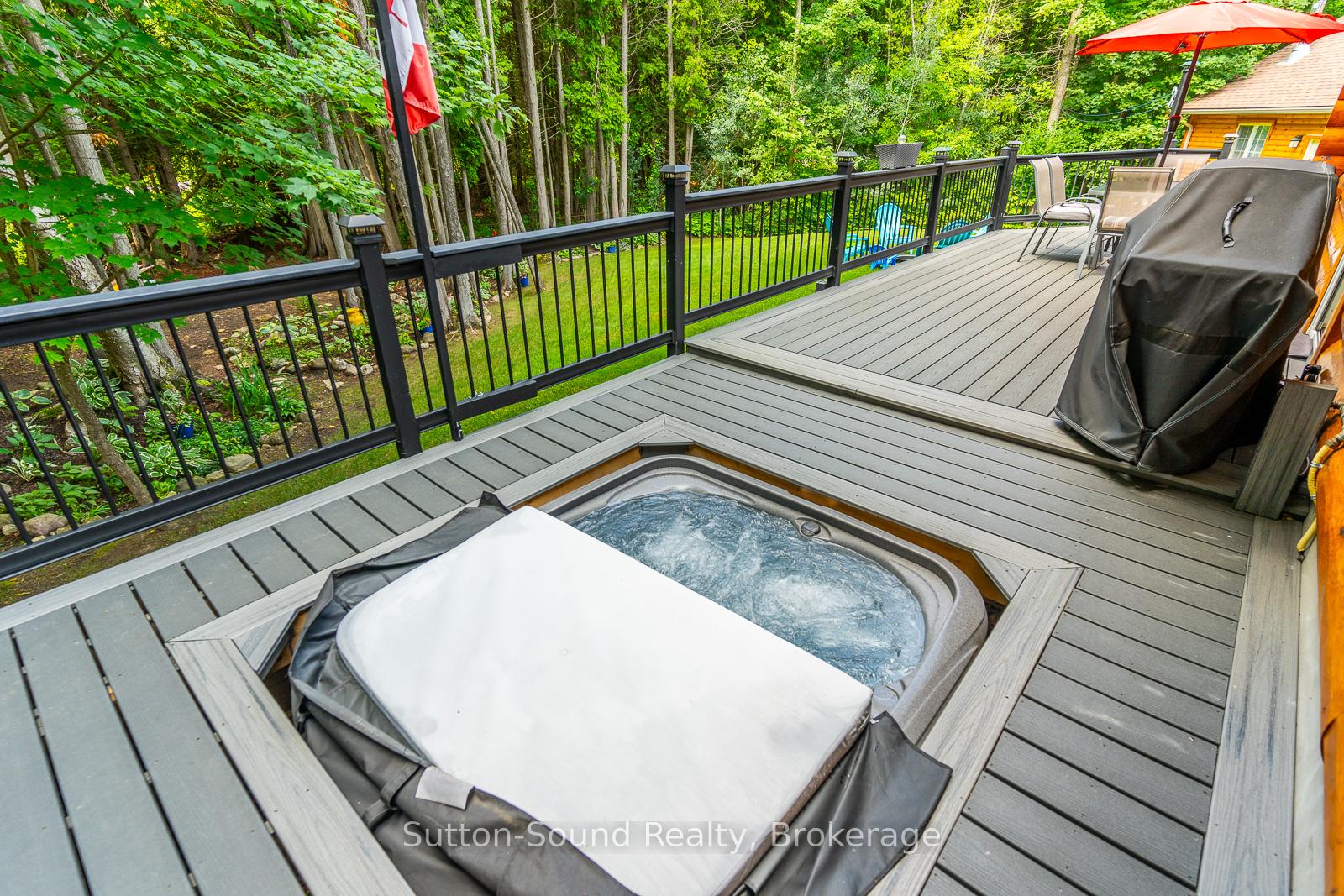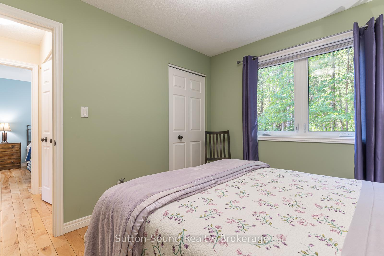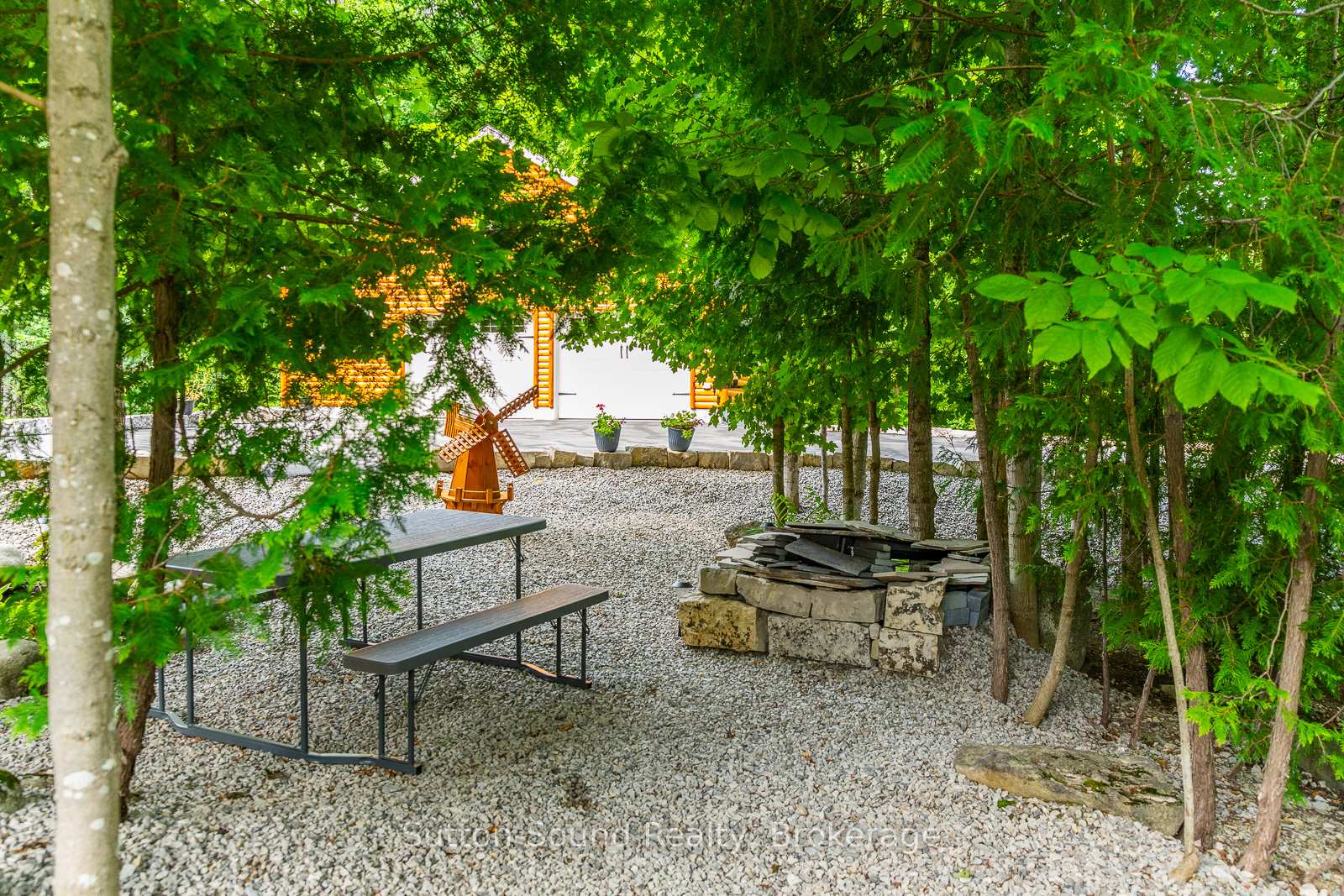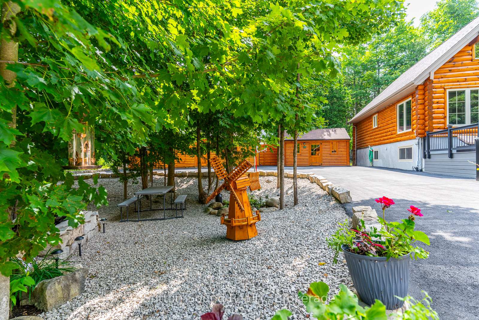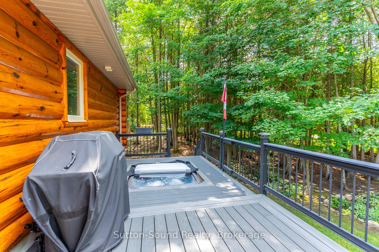 One owner, immaculate and fully furnished 4 bed 3 bath Sauble Beach retreat with Fibre Optic Internet and Natural Gas. Over 2100 finished sq ft of living space, situated on a half acre private lot with a large 2 car (600 sq ft)detached, insulated and heated shop/garage. As you drive up the circular, paved drive you will find the most meticulous and well cared for lawn and perennial beds in a completely private setting where you can spend the afternoon under the trees or on the wrap around 800' of no maintenance composite decking with plenty of room to entertain plus a sunken hot tub to enjoy after a long day at the beach. As you enter the gorgeous, low maintenance Natural Log Sided home you will find pride of ownership in every room. The open concept main floor living area is flooded with natural light, compliments of the wall of windows, a bright updated kitchen with white cabinets and black sparkling granite countertops complete with all newer stainless appliances(2022) and high end plumbing fixtures. On the main level you will also find 2 nice size bedrooms, laundry room a 4 piece bath and gorgeous solid maple flooring throughout. Head to the upper level where you will find a large primary suite offering tons of closet/cabinet space, a 4 pc ensuite bathroom and a compact/bright office cove at the top of the stairs. Next find your way to the fully finished lower level to enjoy a relaxing rainy day indoors! Waiting there is a generous size games room with both a pool table and shuffle board (incl), large extra bedroom, office/den and a 3rd 2 pc bathroom. Bathrooms all have high end plumbing fixtures and granite counters. Incase you need extra space to store your lawn and garden tools there is a 10'x16' garden shed plus another 10'x32' fully insulated outbuilding offering another 480 sq ft of space for extra storage or could be easily transformed into bunkies for overflow guests. All you need to do is move in and enjoy!