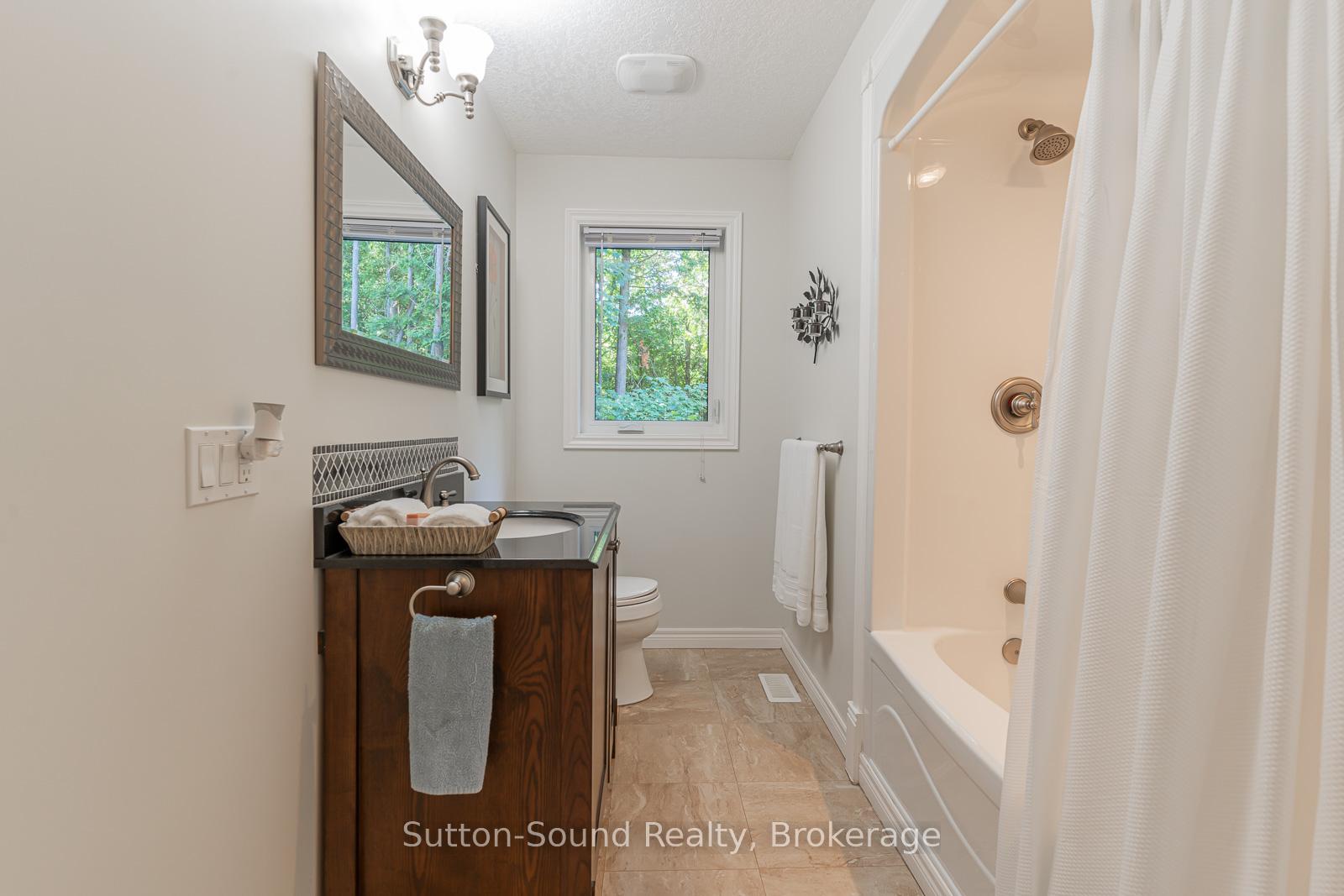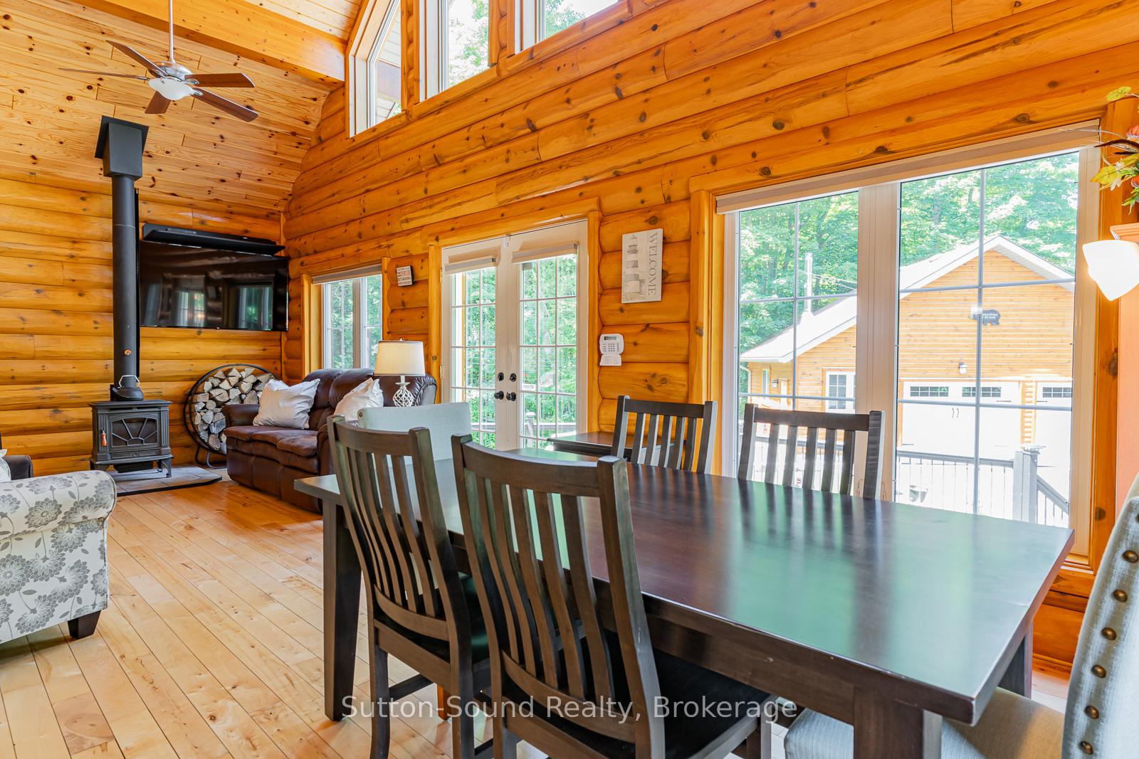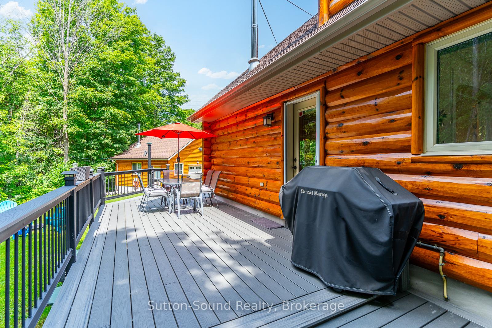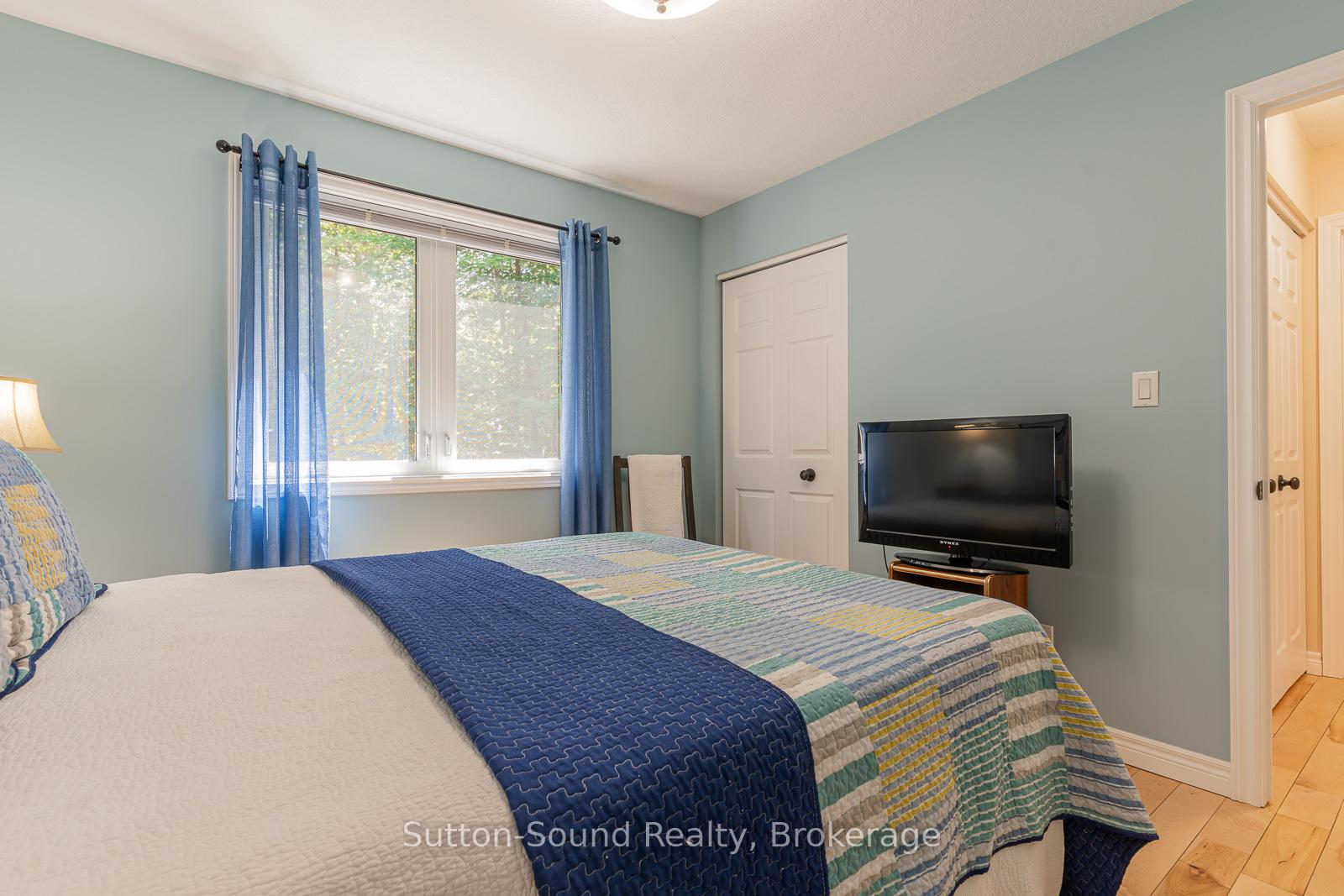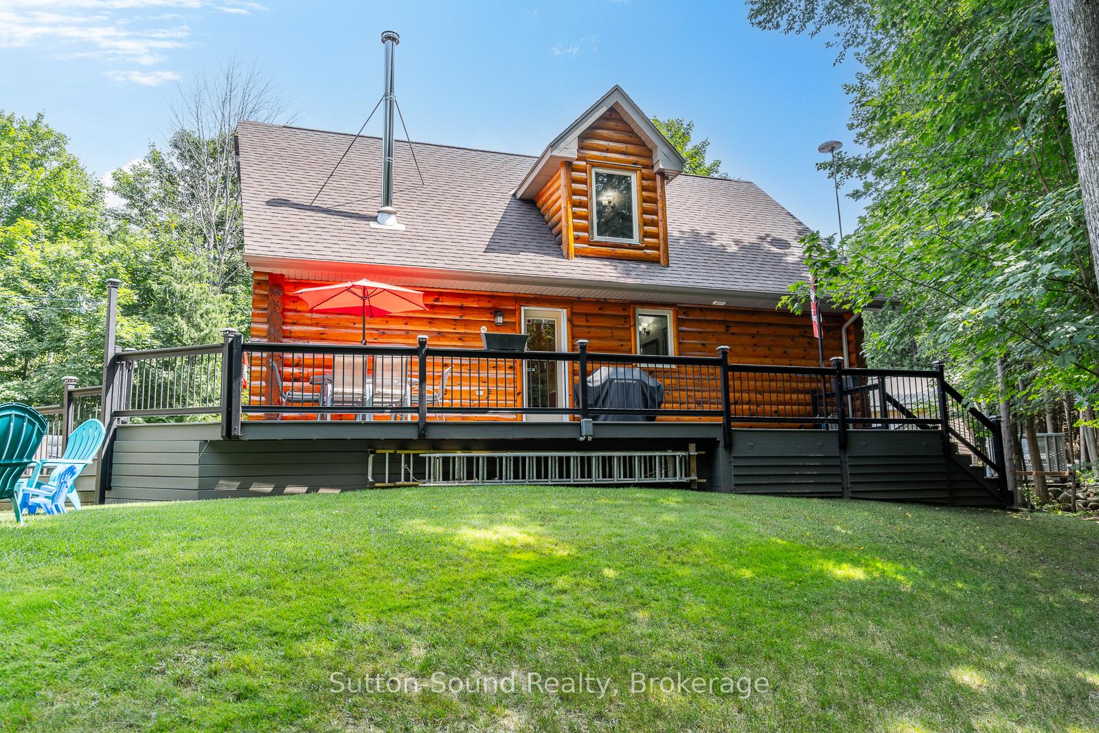 One owner, immaculate and fully furnished 4 bed 3 bath Sauble Beach retreat with Fibre Optic Internet and Natural Gas. Over 2100 finished sq ft of living space, situated on a half acre private lot with a large 2 car (600 sq ft)detached, insulated and heated shop/garage. As you drive up the circular, paved drive you will find the most meticulous and well cared for lawn and perennial beds in a completely private setting where you can spend the afternoon under the trees or on the wrap around 800' of no maintenance composite decking with plenty of room to entertain plus a sunken hot tub to enjoy after a long day at the beach. As you enter the gorgeous, low maintenance Natural Log Sided home you will find pride of ownership in every room. The open concept main floor living area is flooded with natural light, compliments of the wall of windows, a bright updated kitchen with white cabinets and black sparkling granite countertops complete with all newer stainless appliances(2022) and high end plumbing fixtures. On the main level you will also find 2 nice size bedrooms, laundry room a 4 piece bath and gorgeous solid maple flooring throughout. Head to the upper level where you will find a large primary suite offering tons of closet/cabinet space, a 4 pc ensuite bathroom and a compact/bright office cove at the top of the stairs. Next find your way to the fully finished lower level to enjoy a relaxing rainy day indoors! Waiting there is a generous size games room with both a pool table and shuffle board (incl), large extra bedroom, office/den and a 3rd 2 pc bathroom. Bathrooms all have high end plumbing fixtures and granite counters. Incase you need extra space to store your lawn and garden tools there is a 10'x16' garden shed plus another 10'x32' fully insulated outbuilding offering another 480 sq ft of space for extra storage or could be easily transformed into bunkies for overflow guests. All you need to do is move in and enjoy!
