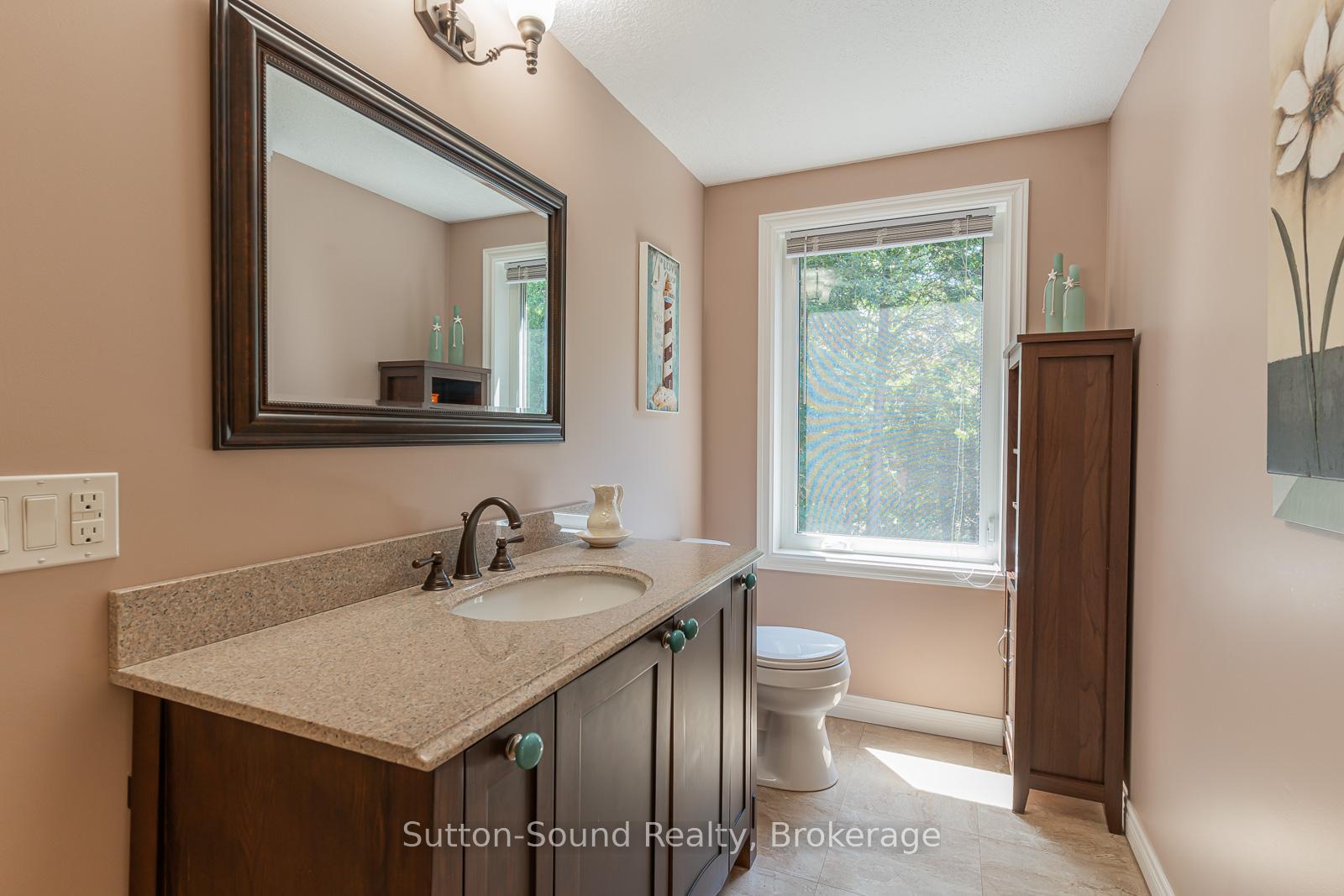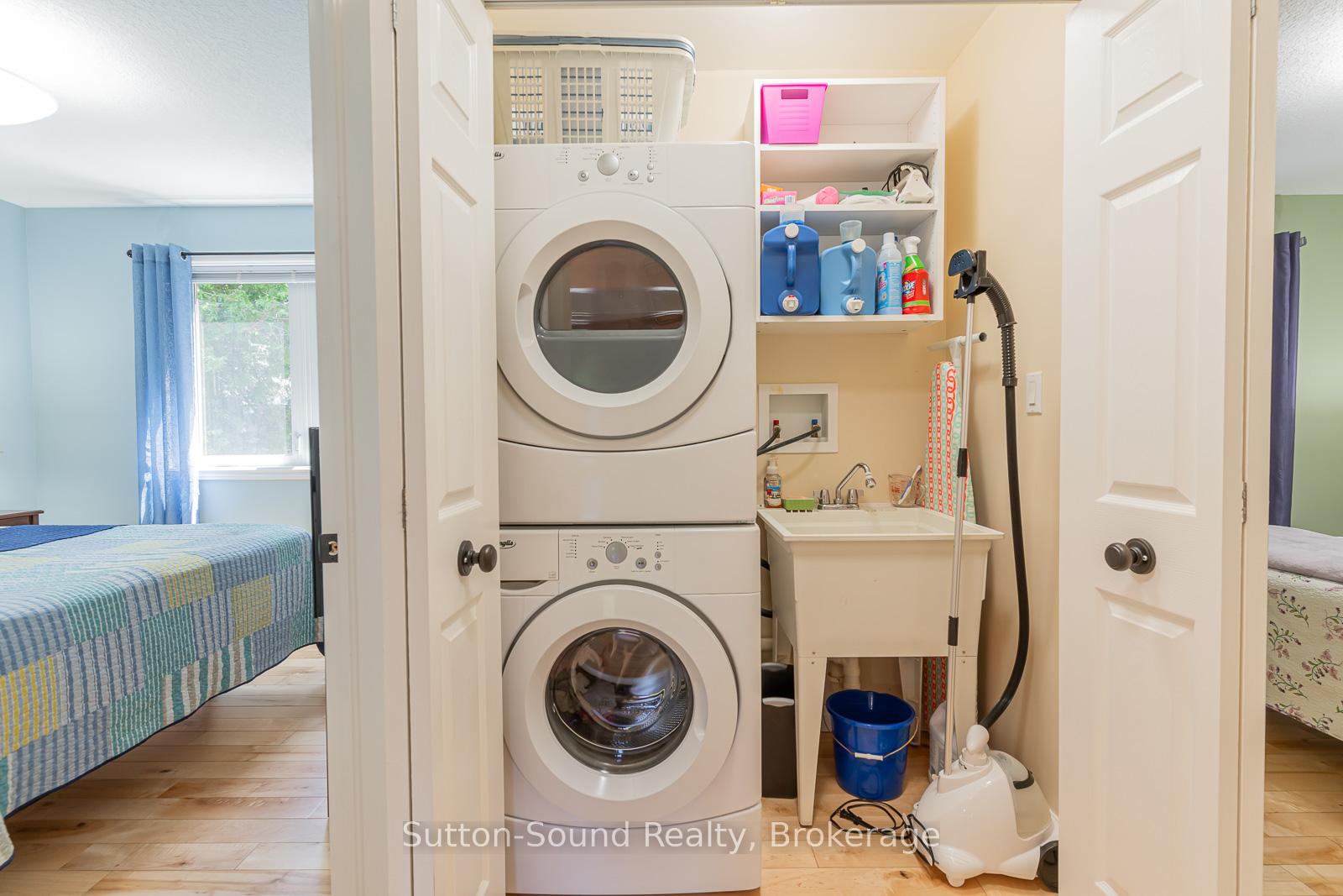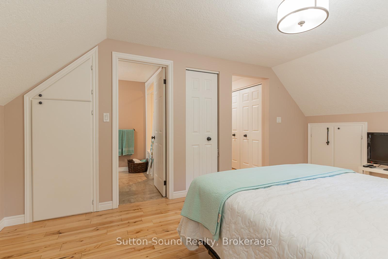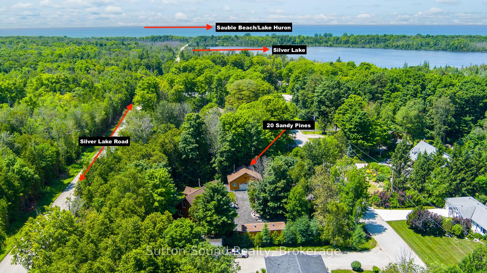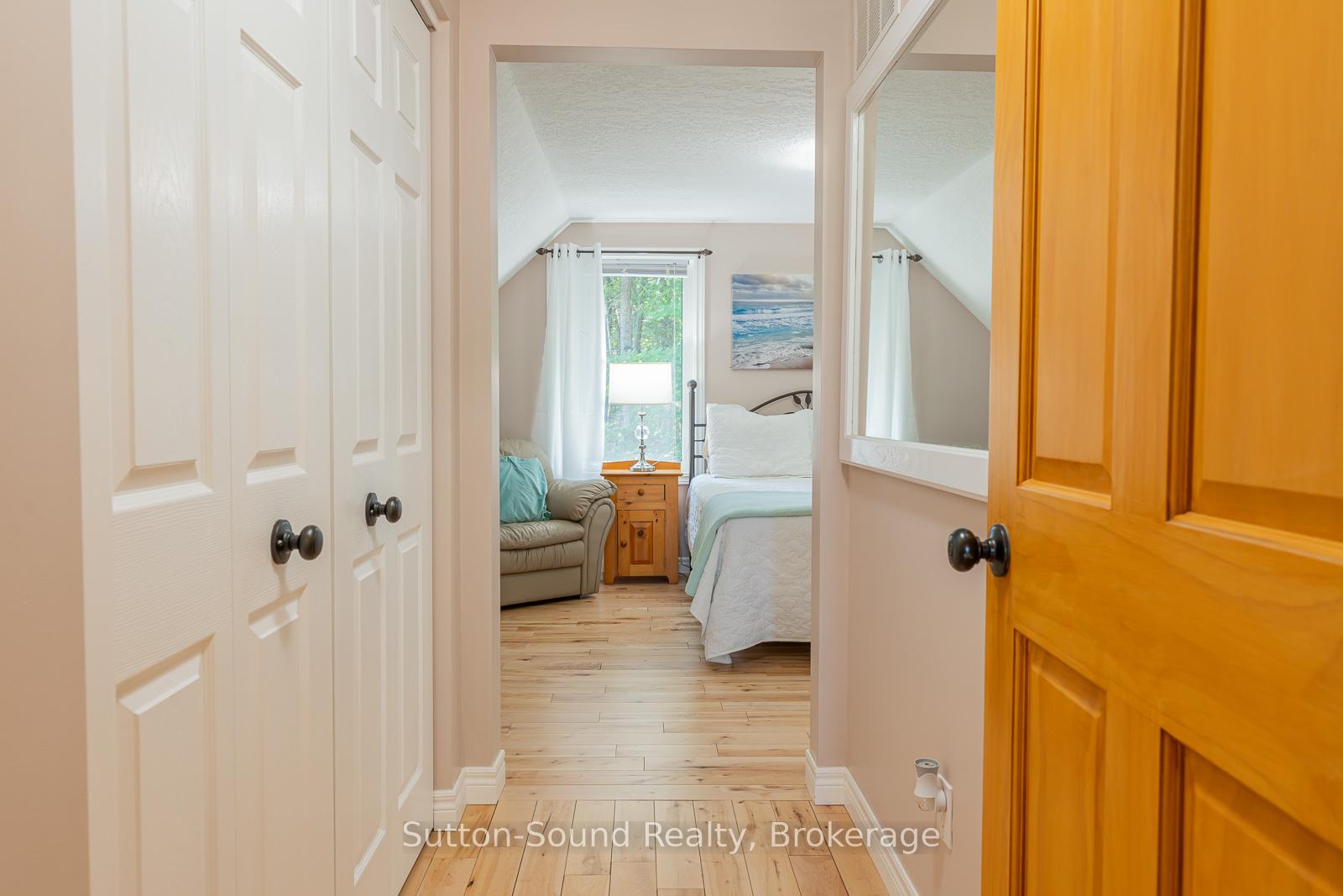 One owner, immaculate and fully furnished 4 bed 3 bath Sauble Beach retreat with Fibre Optic Internet and Natural Gas. Over 2100 finished sq ft of living space, situated on a half acre private lot with a large 2 car (600 sq ft)detached, insulated and heated shop/garage. As you drive up the circular, paved drive you will find the most meticulous and well cared for lawn and perennial beds in a completely private setting where you can spend the afternoon under the trees or on the wrap around 800' of no maintenance composite decking with plenty of room to entertain plus a sunken hot tub to enjoy after a long day at the beach. As you enter the gorgeous, low maintenance Natural Log Sided home you will find pride of ownership in every room. The open concept main floor living area is flooded with natural light, compliments of the wall of windows, a bright updated kitchen with white cabinets and black sparkling granite countertops complete with all newer stainless appliances(2022) and high end plumbing fixtures. On the main level you will also find 2 nice size bedrooms, laundry room a 4 piece bath and gorgeous solid maple flooring throughout. Head to the upper level where you will find a large primary suite offering tons of closet/cabinet space, a 4 pc ensuite bathroom and a compact/bright office cove at the top of the stairs. Next find your way to the fully finished lower level to enjoy a relaxing rainy day indoors! Waiting there is a generous size games room with both a pool table and shuffle board (incl), large extra bedroom, office/den and a 3rd 2 pc bathroom. Bathrooms all have high end plumbing fixtures and granite counters. Incase you need extra space to store your lawn and garden tools there is a 10'x16' garden shed plus another 10'x32' fully insulated outbuilding offering another 480 sq ft of space for extra storage or could be easily transformed into bunkies for overflow guests. All you need to do is move in and enjoy!