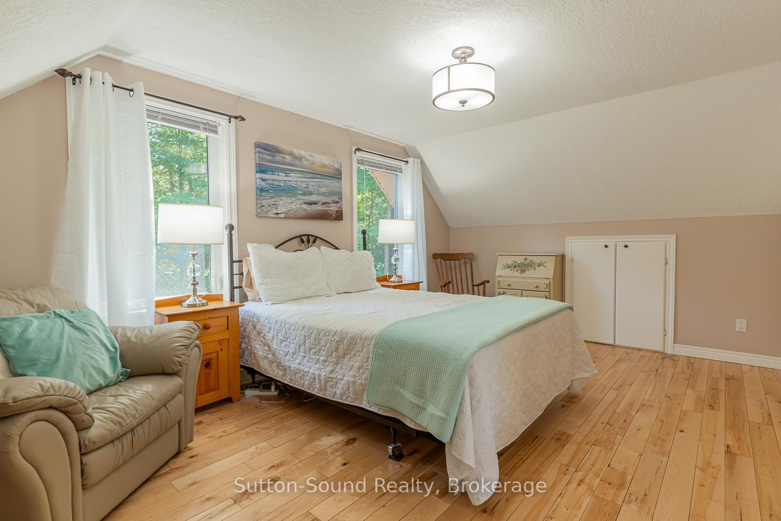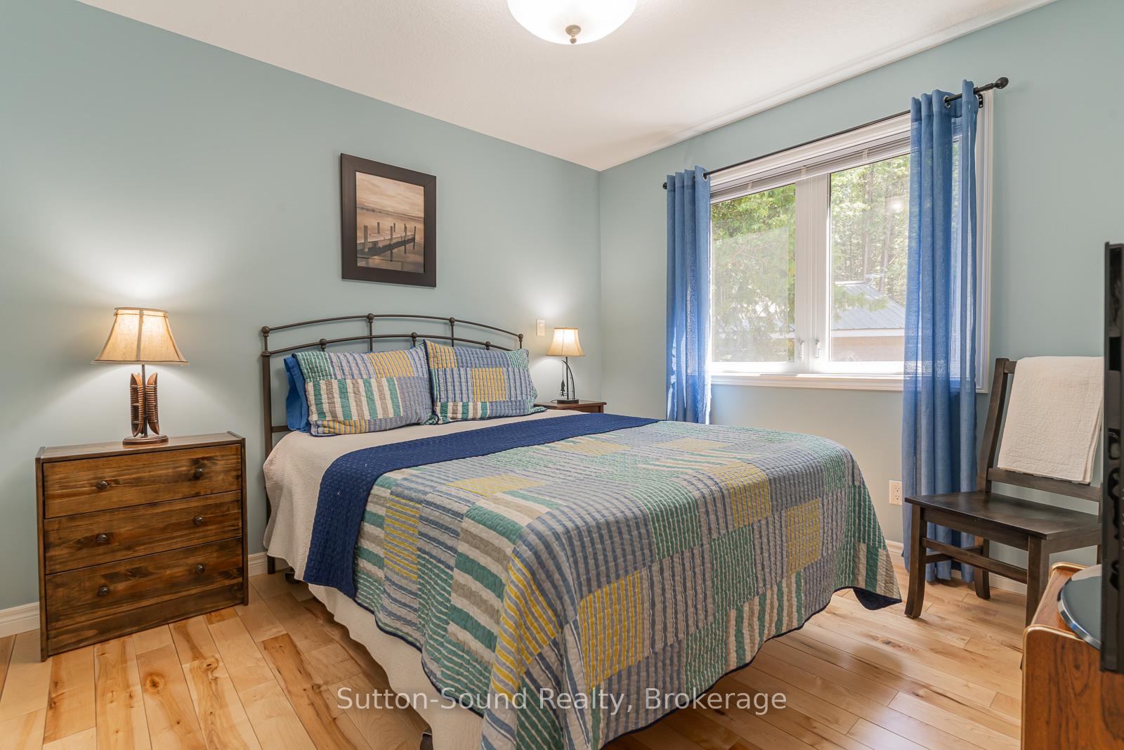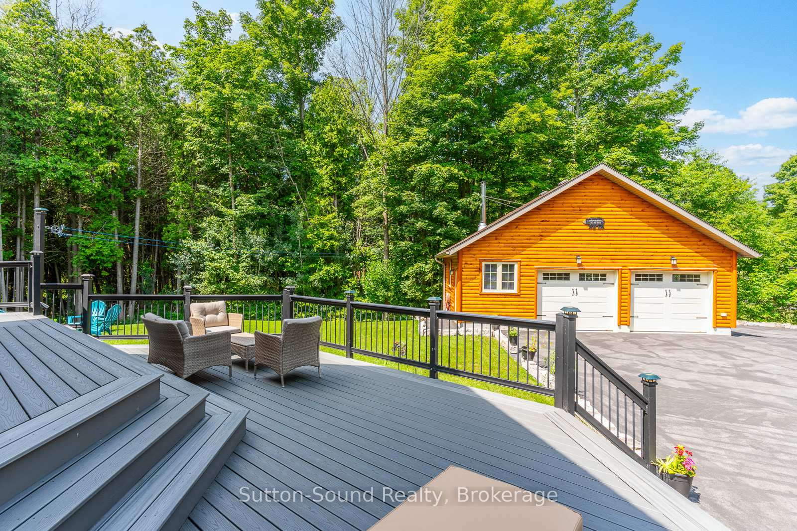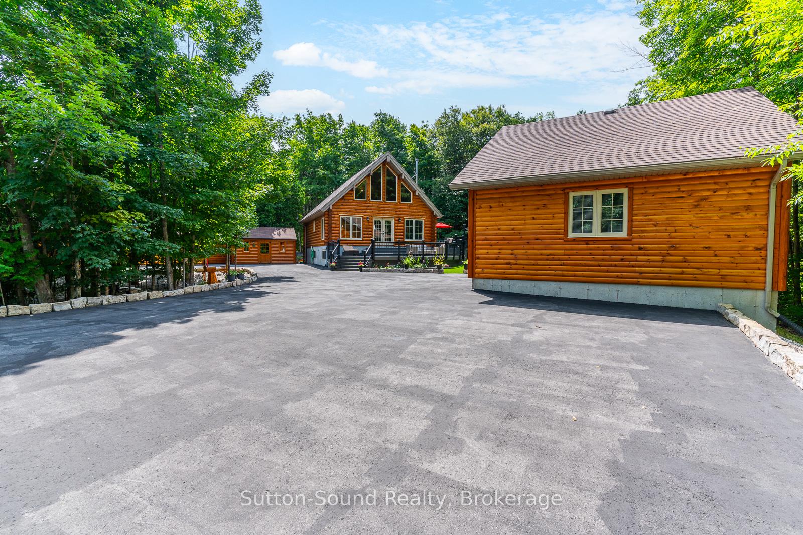 Discover the magic of Sauble Beach living in every season. This turn-key 4-bedroom, 3-bath retreat offers over 2,100 sq ft of finished living space, Fibre Optic internet, and Natural Gas, making it ideal for full-time living, weekend escapes, or work-from-home comfort year-round. Set on over half an acre, the property provides rare privacy and space to unwind long after summer crowds have gone. Arrive home via the circular paved driveway to a peaceful, tree-lined setting with manicured lawns and perennial gardens. Enjoy crisp fall mornings and snowy winter evenings on approximately 800 sq ft of wraparound, low-maintenance composite decking, or soak year-round in the sunken hot tub after beach walks, snowshoeing, or trail adventures. Inside, the open-concept main floor is warm and inviting, filled with natural light from a wall of windows. The updated kitchen features white cabinetry, black granite countertops, stainless steel appliances, and high-end fixtures, flowing seamlessly into comfortable living and dining spaces. The main level also offers two spacious bedrooms, laundry, a 4-piece bath, and solid maple flooring throughout.The upper-level primary suite provides a quiet escape with generous closet space, a 4-piece ensuite, and a bright office/reading nook-perfect for remote work. The fully finished lower level is ideal for winter nights and rainy days, featuring a large games room, guest bedroom, office/den, and 2-piece bath.Outdoor storage and hobby space abound with a detached insulated & heated 2-car shop/garage, a 10' x 16' garden shed, and an additional 10' x 32' fully insulated outbuilding-ideal for storage, a workshop, or future bunkie. A rare opportunity to enjoy the calm, beauty, and comfort of Sauble Beach-365 days a year.