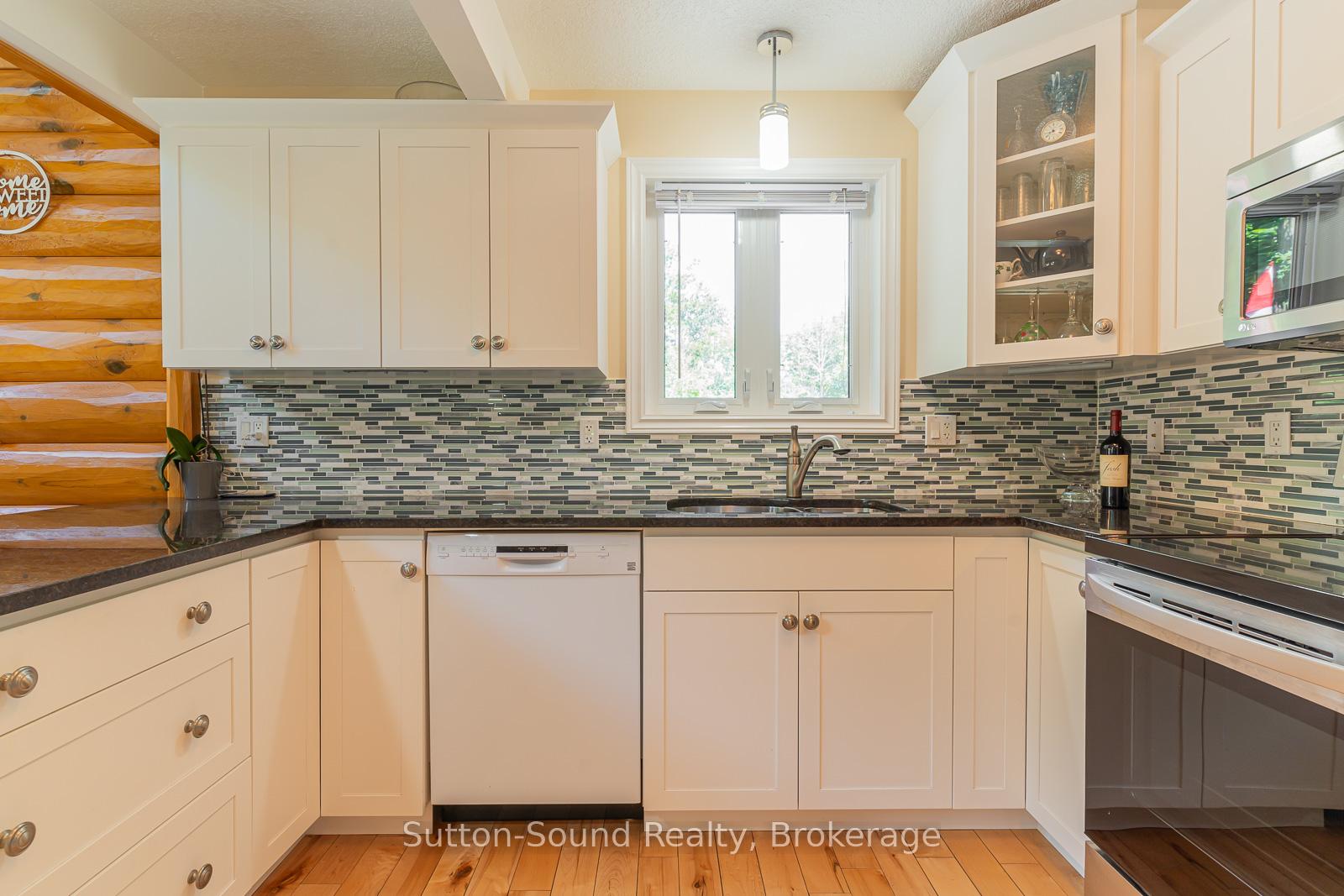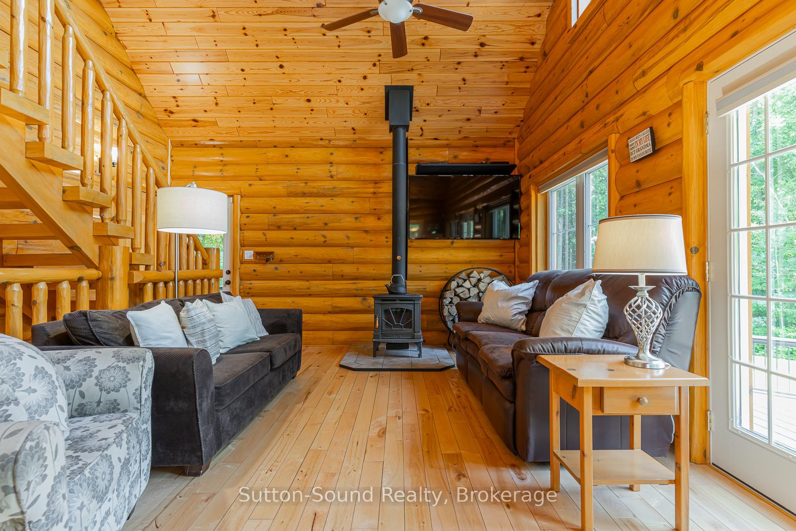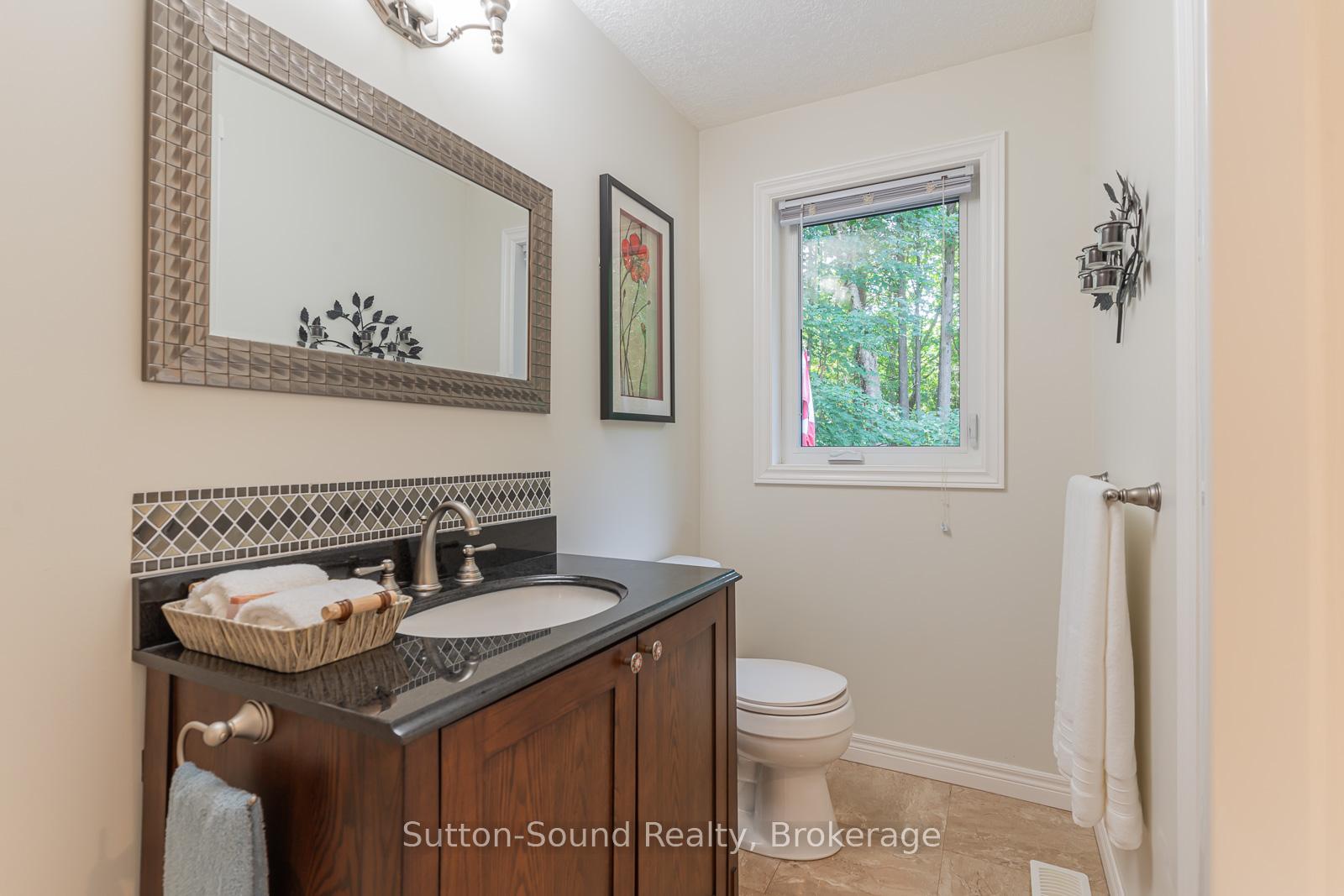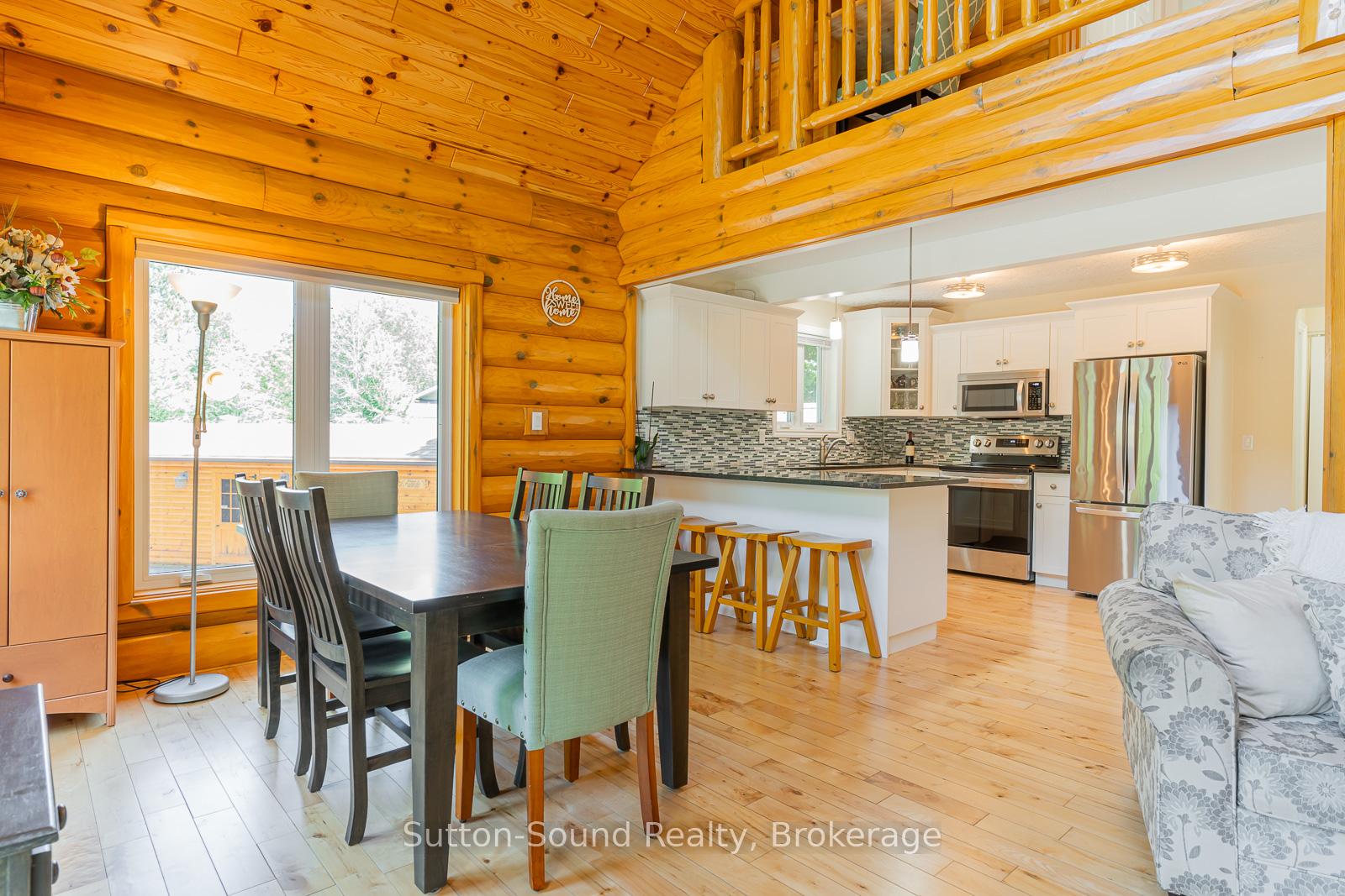 Discover the magic of Sauble Beach living in every season. This turn-key 4-bedroom, 3-bath retreat offers over 2,100 sq ft of finished living space, Fibre Optic internet, and Natural Gas, making it ideal for full-time living, weekend escapes, or work-from-home comfort year-round. Set on over half an acre, the property provides rare privacy and space to unwind long after summer crowds have gone. Arrive home via the circular paved driveway to a peaceful, tree-lined setting with manicured lawns and perennial gardens. Enjoy crisp fall mornings and snowy winter evenings on approximately 800 sq ft of wraparound, low-maintenance composite decking, or soak year-round in the sunken hot tub after beach walks, snowshoeing, or trail adventures. Inside, the open-concept main floor is warm and inviting, filled with natural light from a wall of windows. The updated kitchen features white cabinetry, black granite countertops, stainless steel appliances, and high-end fixtures, flowing seamlessly into comfortable living and dining spaces. The main level also offers two spacious bedrooms, laundry, a 4-piece bath, and solid maple flooring throughout.The upper-level primary suite provides a quiet escape with generous closet space, a 4-piece ensuite, and a bright office/reading nook-perfect for remote work. The fully finished lower level is ideal for winter nights and rainy days, featuring a large games room, guest bedroom, office/den, and 2-piece bath.Outdoor storage and hobby space abound with a detached insulated & heated 2-car shop/garage, a 10' x 16' garden shed, and an additional 10' x 32' fully insulated outbuilding-ideal for storage, a workshop, or future bunkie. A rare opportunity to enjoy the calm, beauty, and comfort of Sauble Beach-365 days a year.