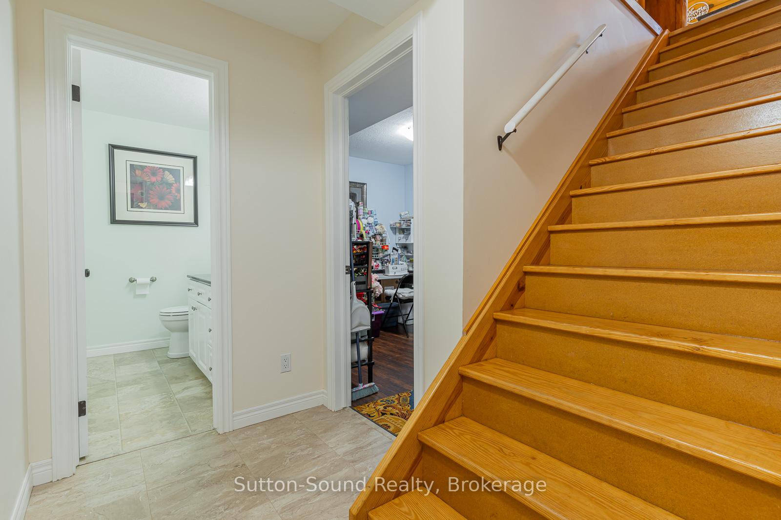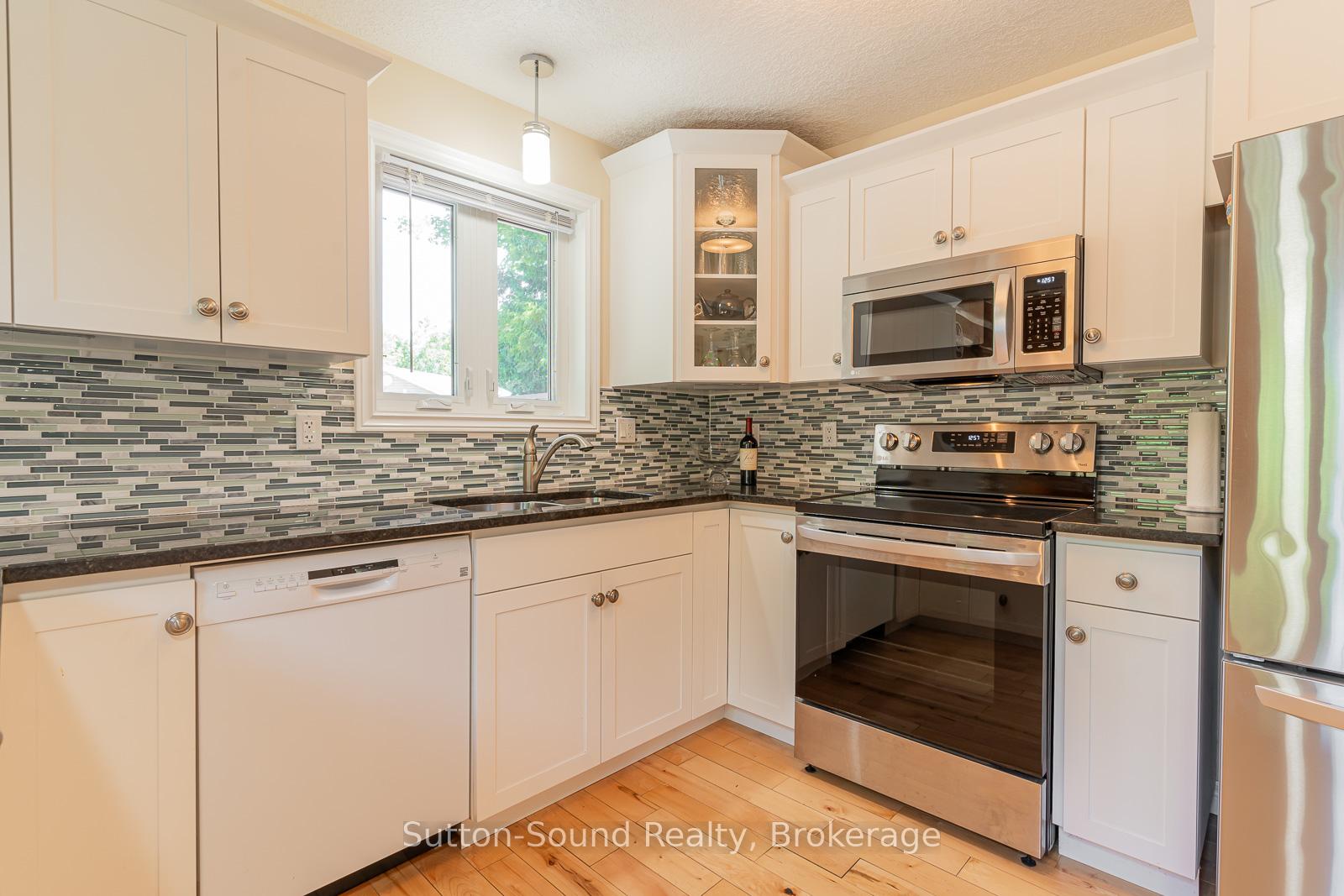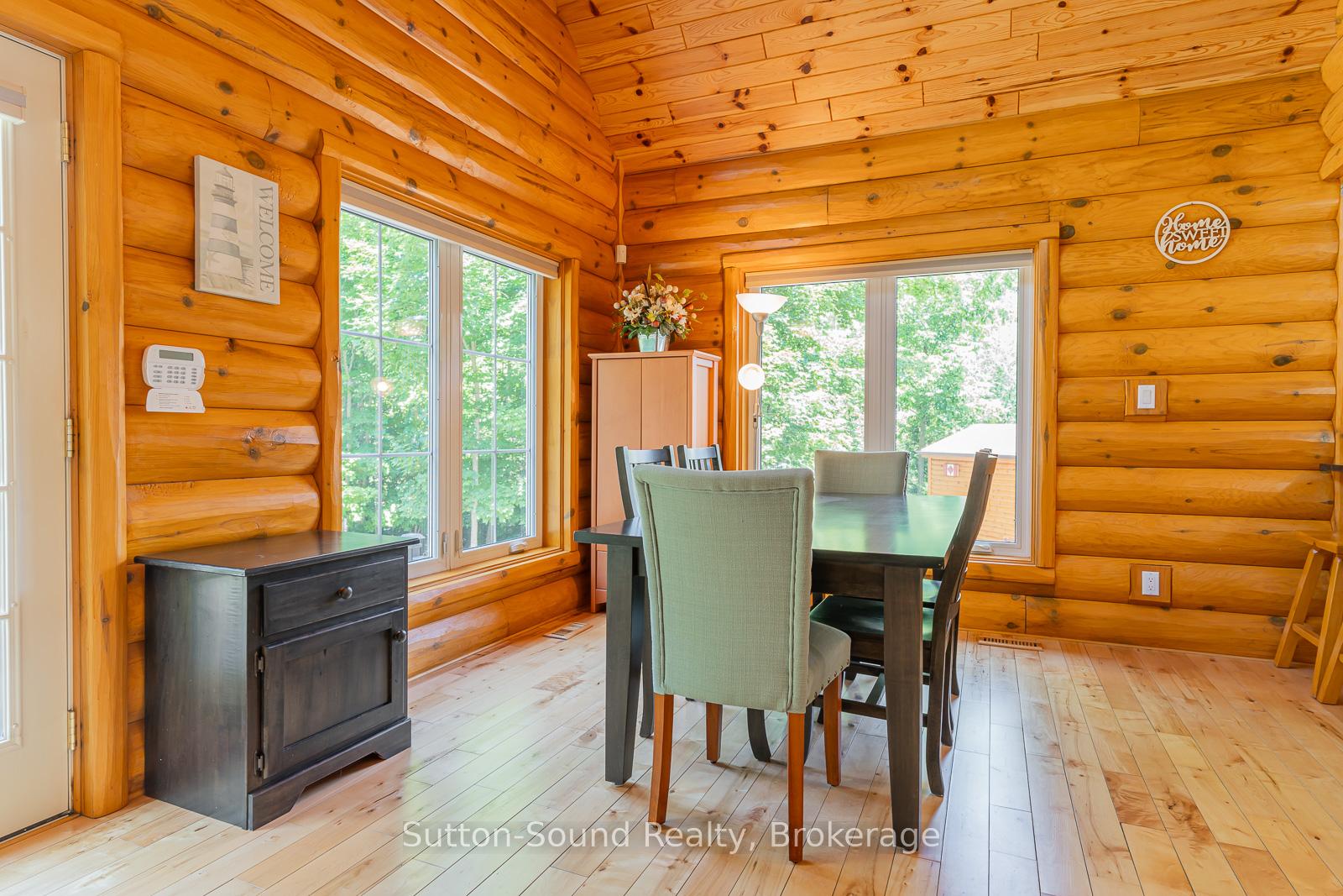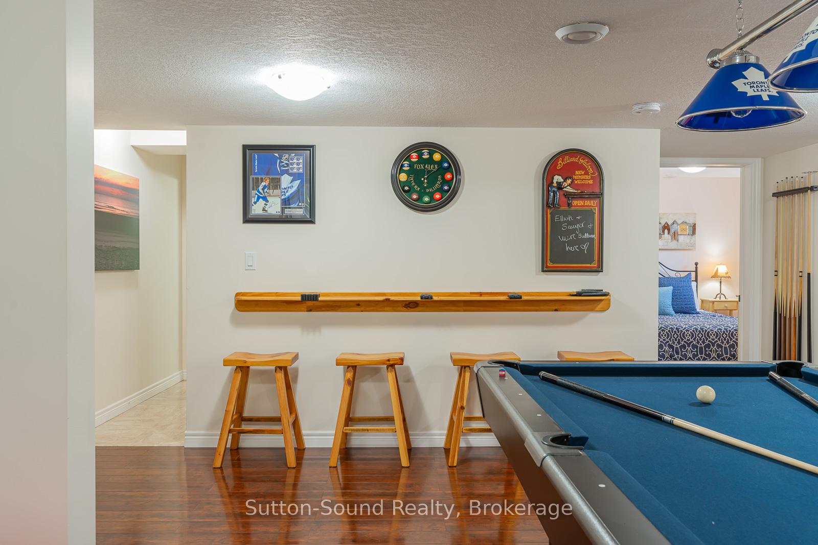 Discover the magic of Sauble Beach living in every season. This turn-key 4-bedroom, 3-bath retreat offers over 2,100 sq ft of finished living space, Fibre Optic internet, and Natural Gas, making it ideal for full-time living, weekend escapes, or work-from-home comfort year-round. Set on over half an acre, the property provides rare privacy and space to unwind long after summer crowds have gone. Arrive home via the circular paved driveway to a peaceful, tree-lined setting with manicured lawns and perennial gardens. Enjoy crisp fall mornings and snowy winter evenings on approximately 800 sq ft of wraparound, low-maintenance composite decking, or soak year-round in the sunken hot tub after beach walks, snowshoeing, or trail adventures. Inside, the open-concept main floor is warm and inviting, filled with natural light from a wall of windows. The updated kitchen features white cabinetry, black granite countertops, stainless steel appliances, and high-end fixtures, flowing seamlessly into comfortable living and dining spaces. The main level also offers two spacious bedrooms, laundry, a 4-piece bath, and solid maple flooring throughout.The upper-level primary suite provides a quiet escape with generous closet space, a 4-piece ensuite, and a bright office/reading nook-perfect for remote work. The fully finished lower level is ideal for winter nights and rainy days, featuring a large games room, guest bedroom, office/den, and 2-piece bath.Outdoor storage and hobby space abound with a detached insulated & heated 2-car shop/garage, a 10' x 16' garden shed, and an additional 10' x 32' fully insulated outbuilding-ideal for storage, a workshop, or future bunkie. A rare opportunity to enjoy the calm, beauty, and comfort of Sauble Beach-365 days a year.
